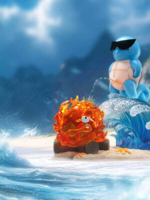 - Interior diorama layout — includes visible shelving, wooden beams, flooring details, and scenic staging areas for collectors to arrange compatible Pokémon figures.