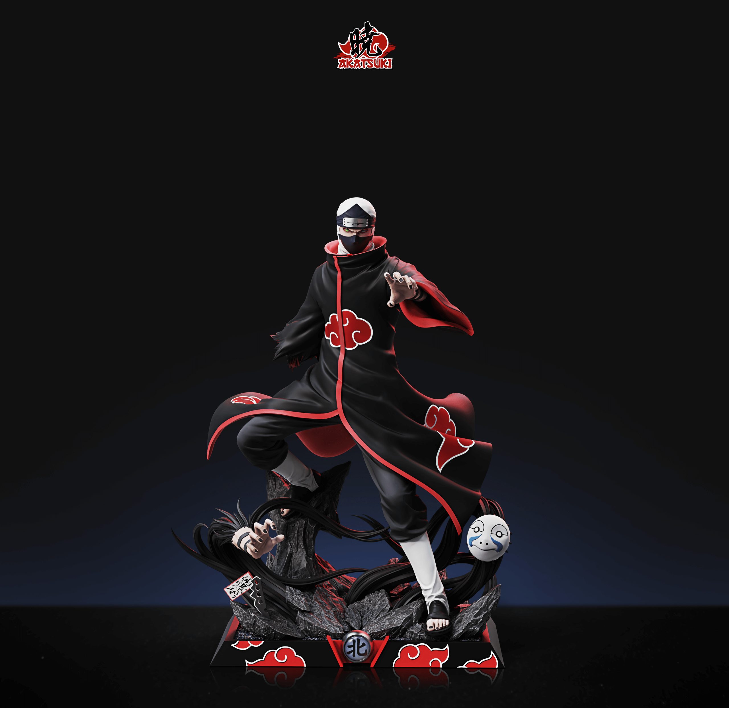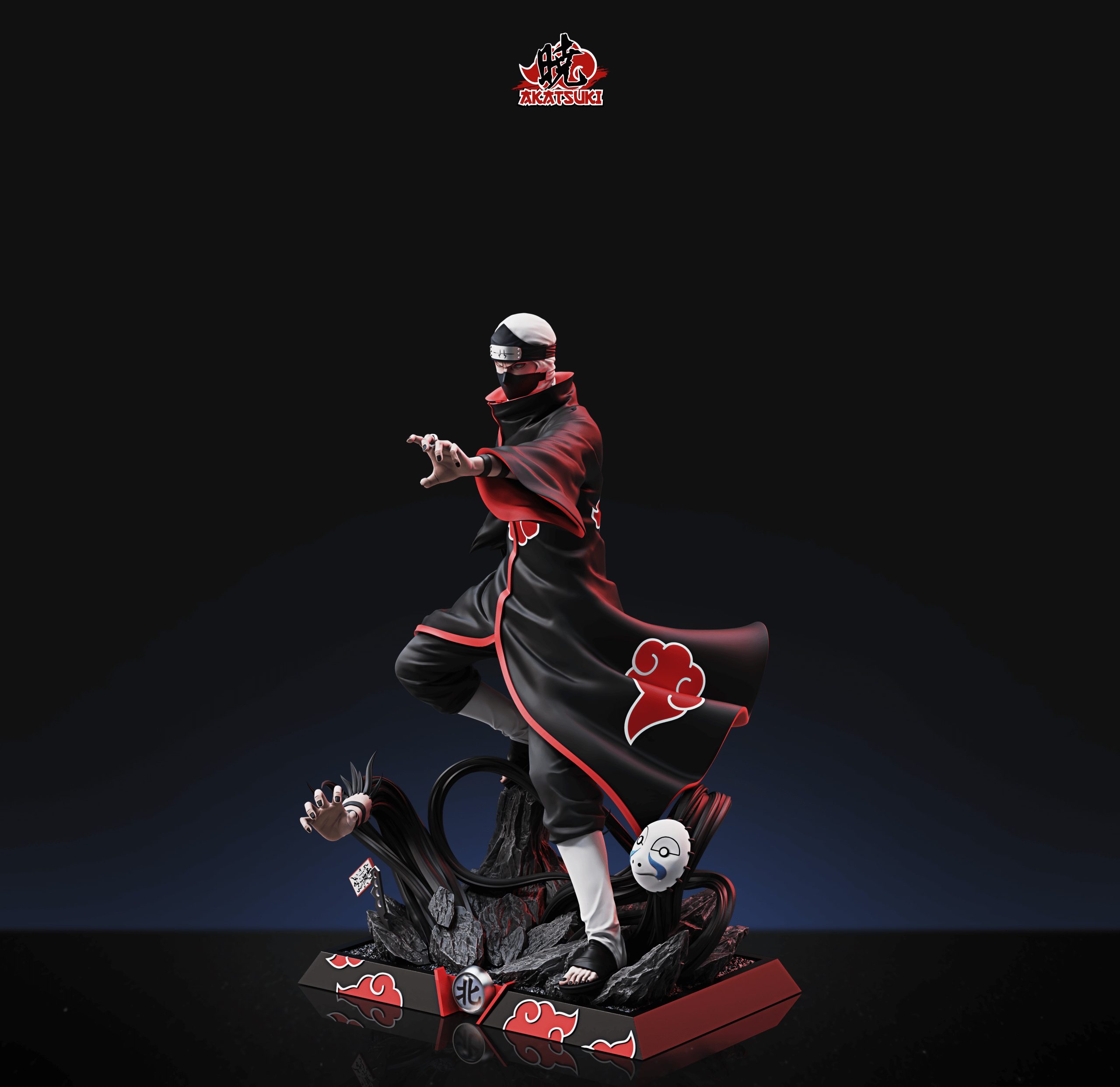 - Kakuzu statue in a mid-jutsu stance with a billowing Akatsuki cloak