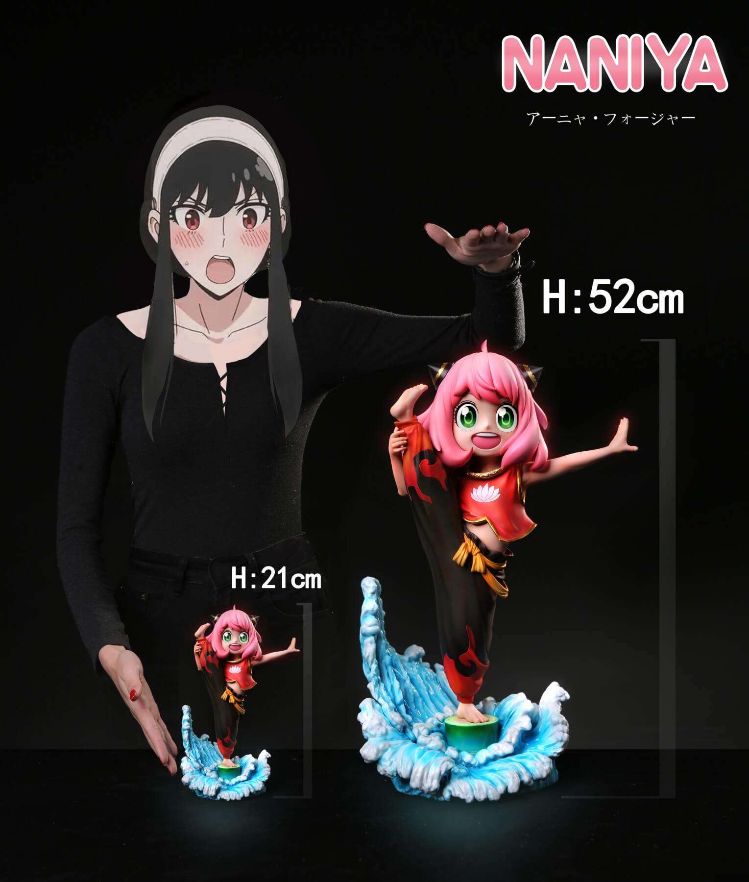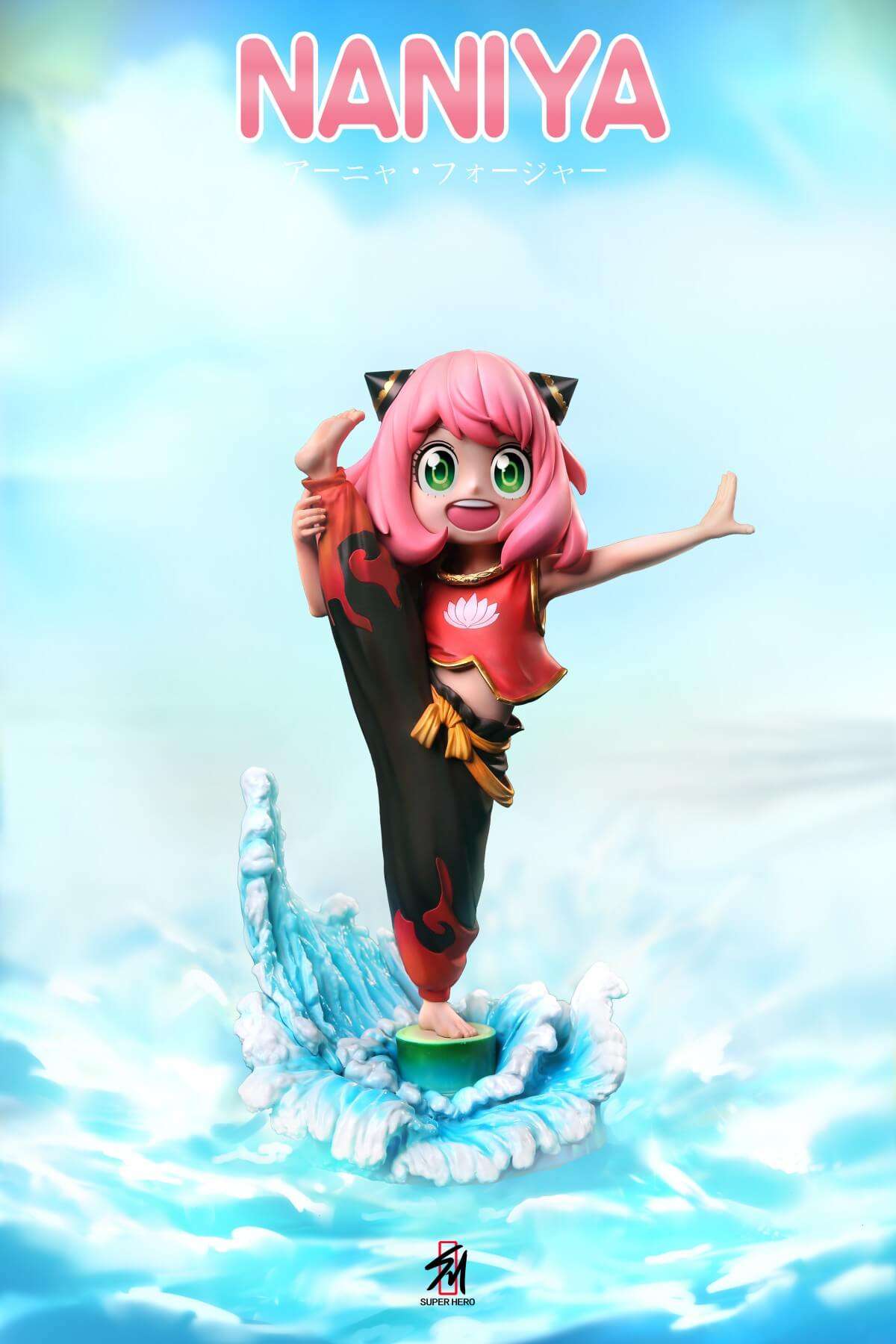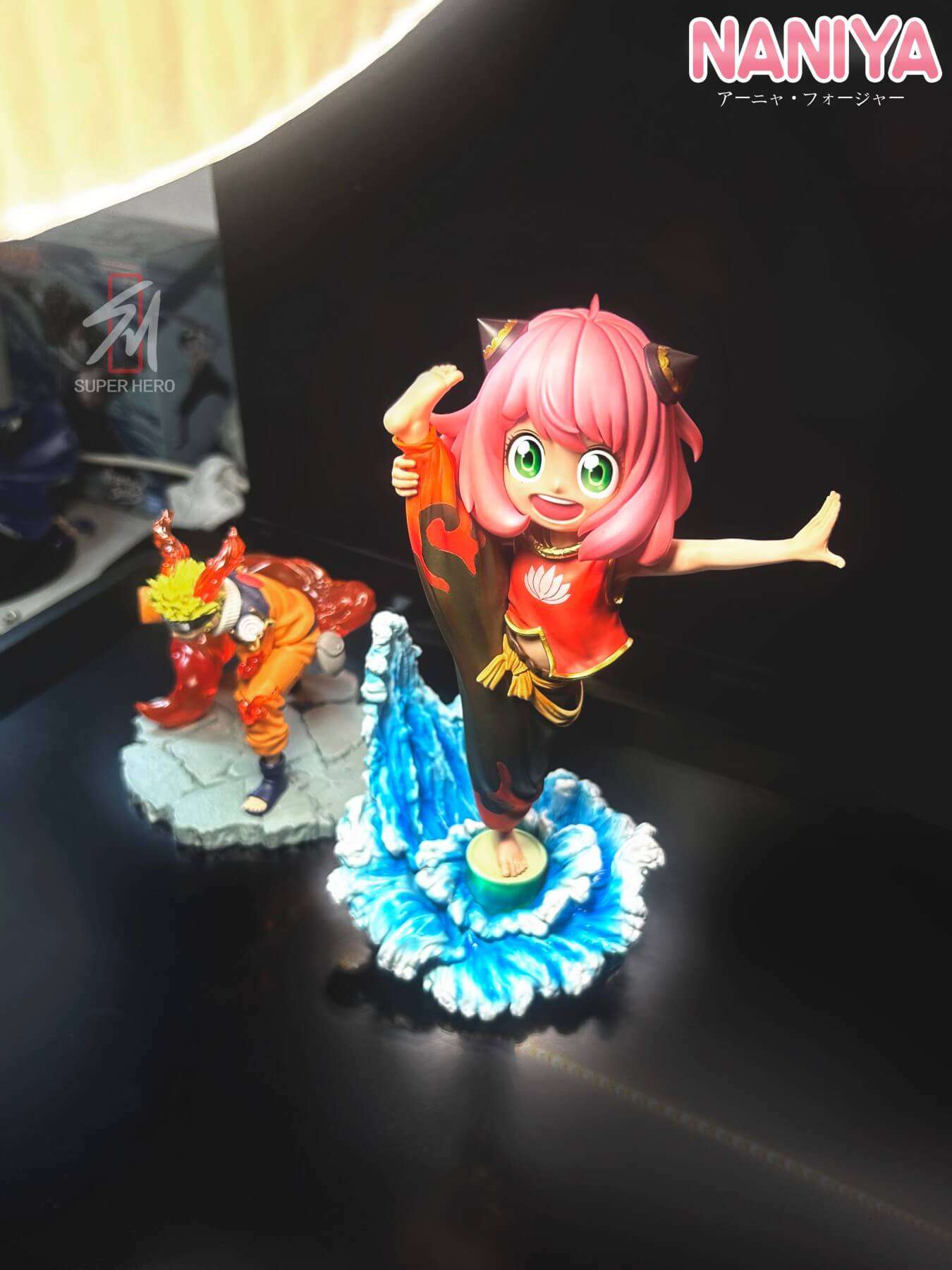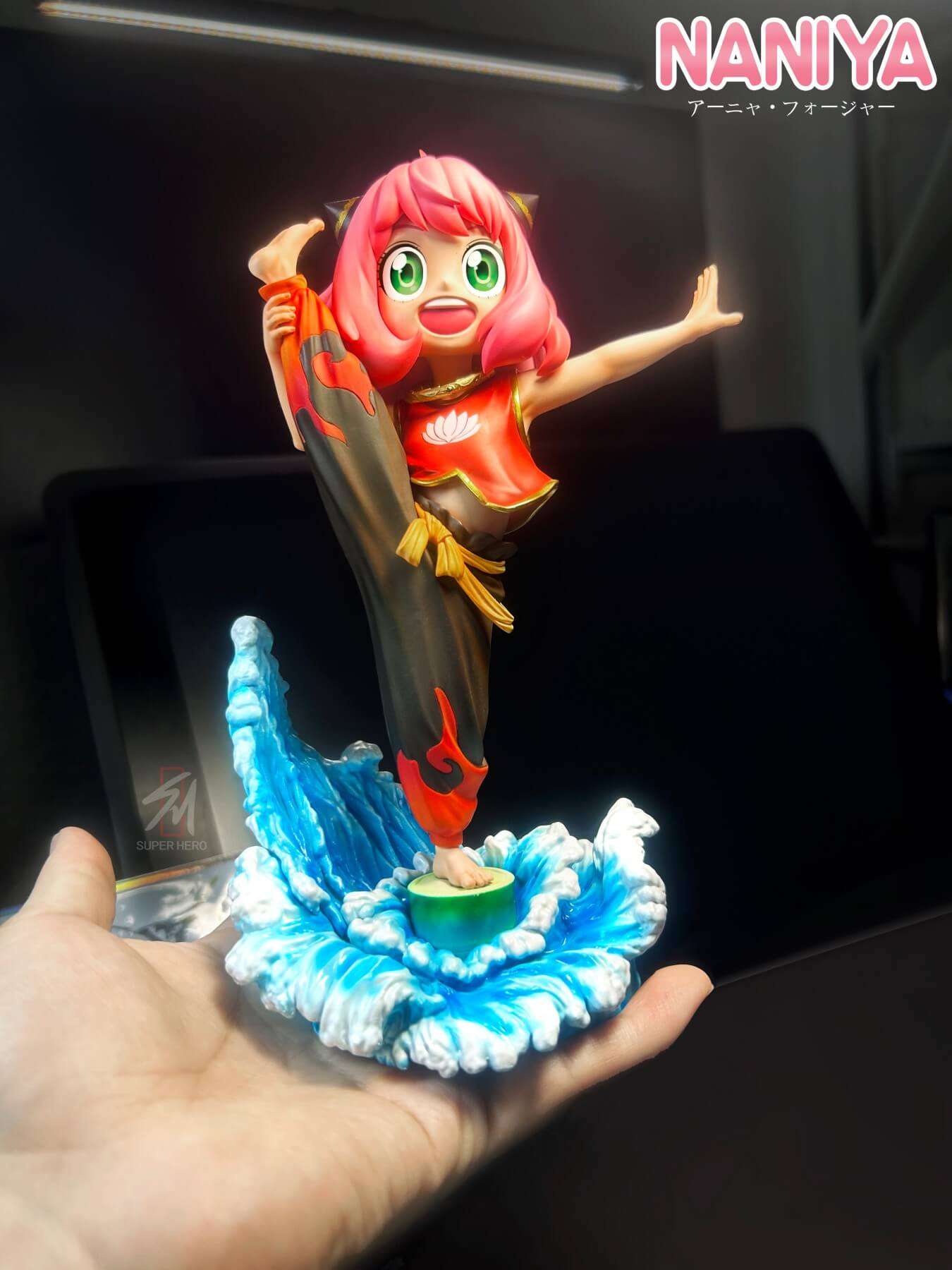 - Main Anya-as-Nezha figure with high kick pose