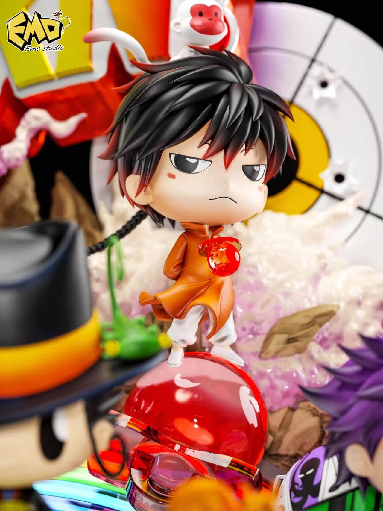 - Seven individual chibi character figures: Reborn, Colonnello, Fon, Skull, Mammon (Viper), Verde, and Uni โ each posed on or around their respective Arcobaleno Pacifier orb in matching flame color