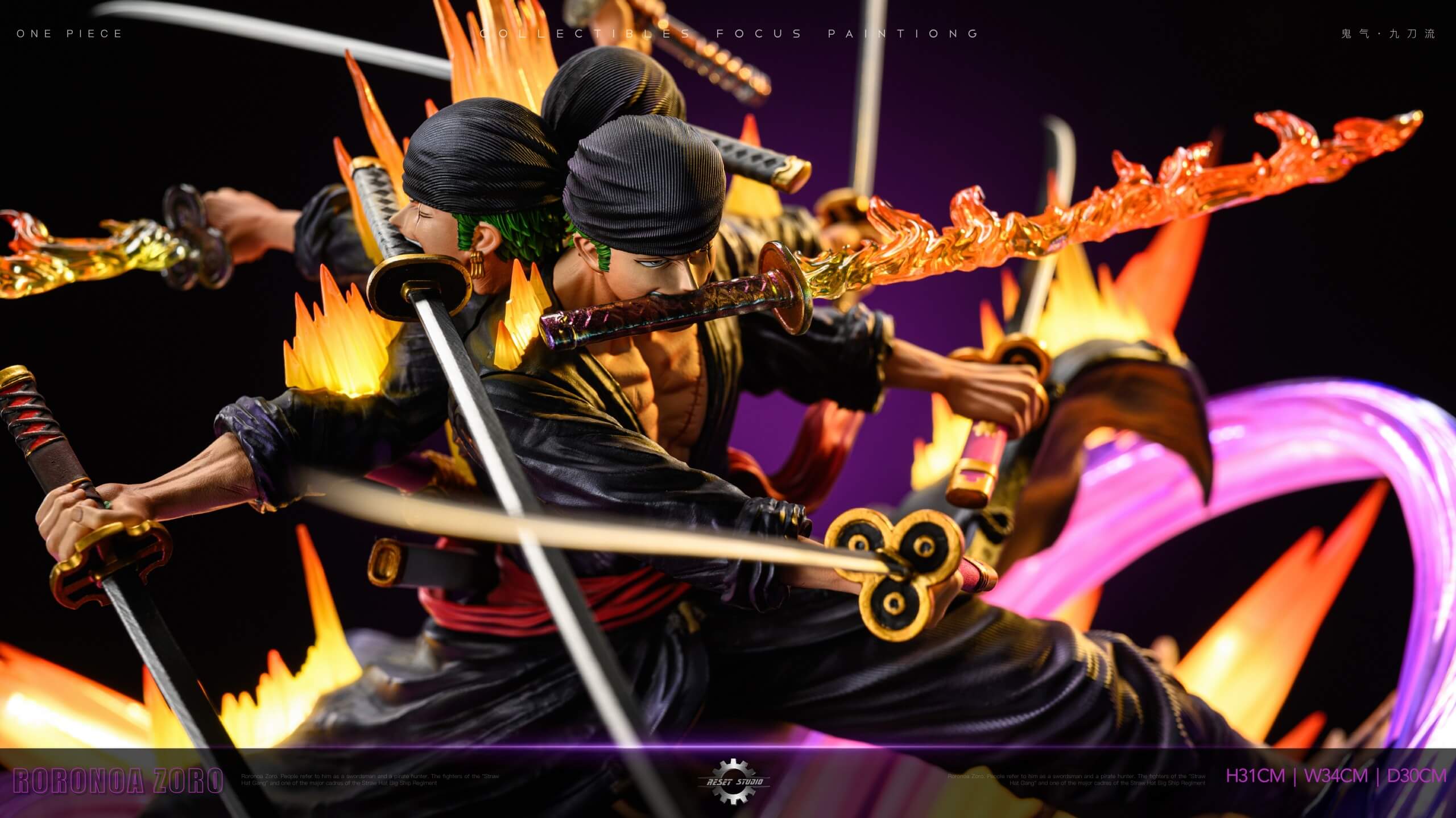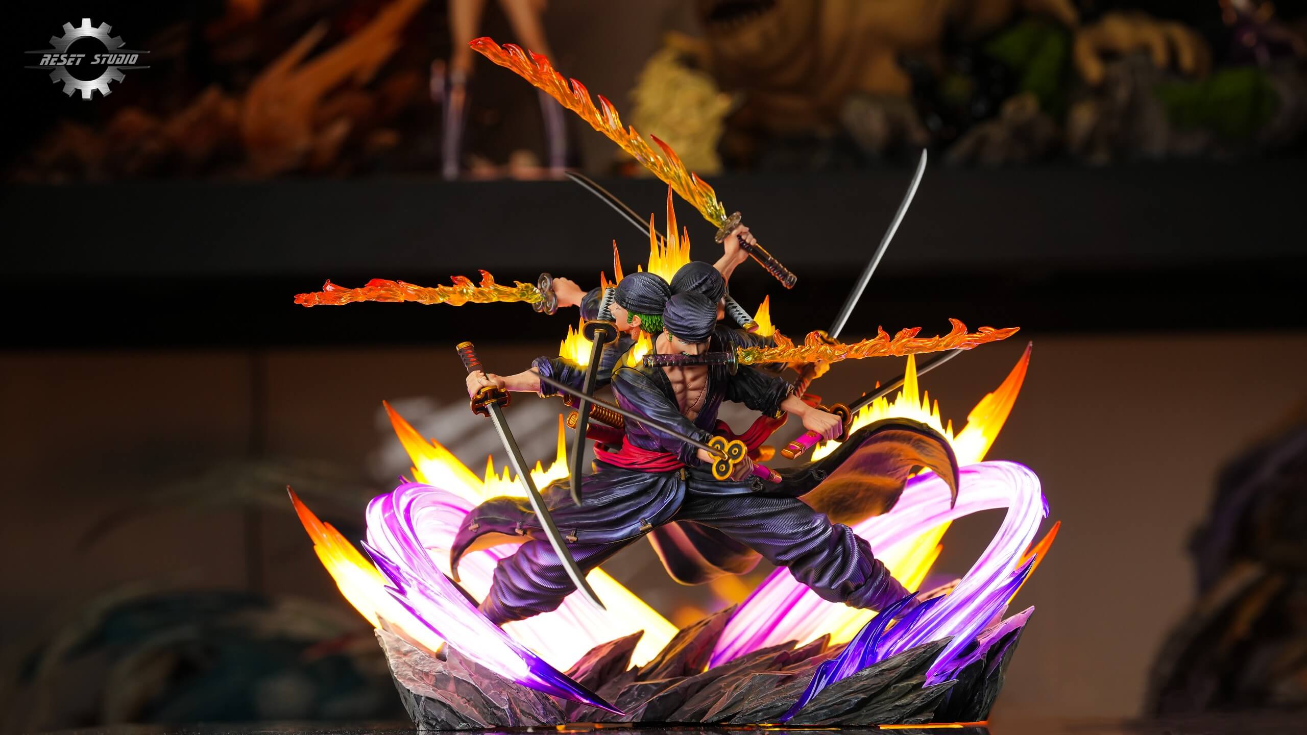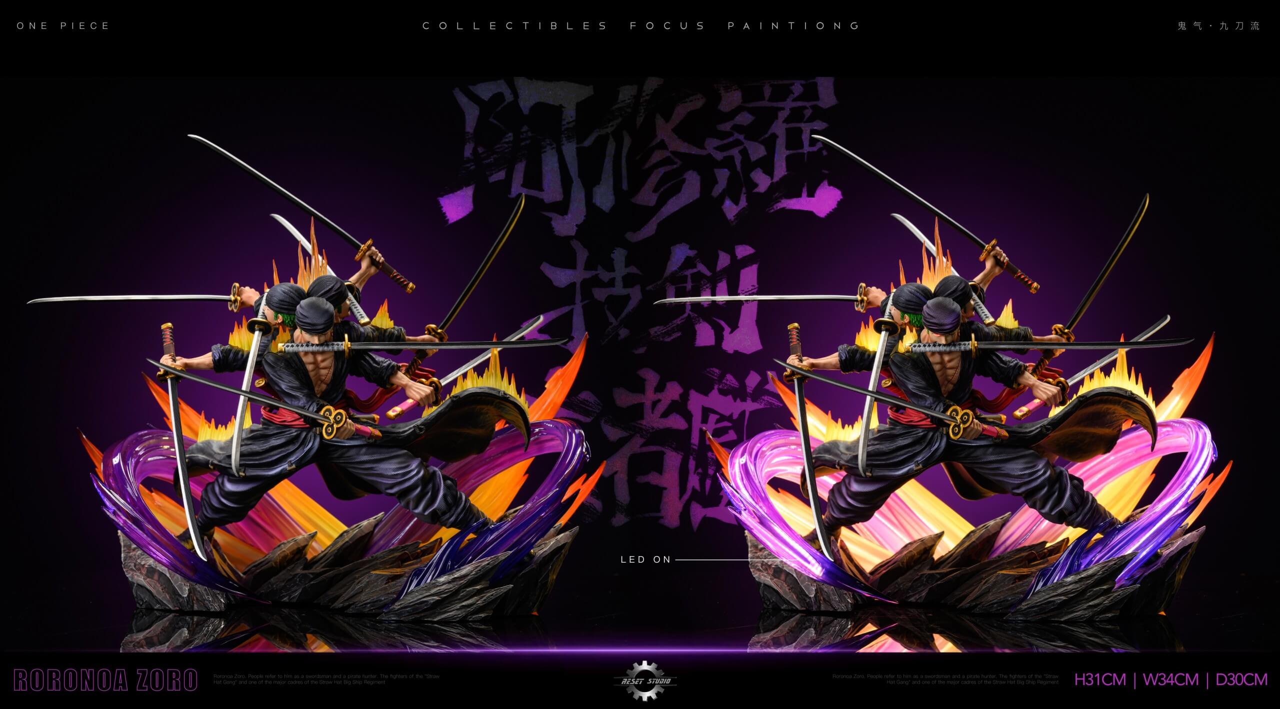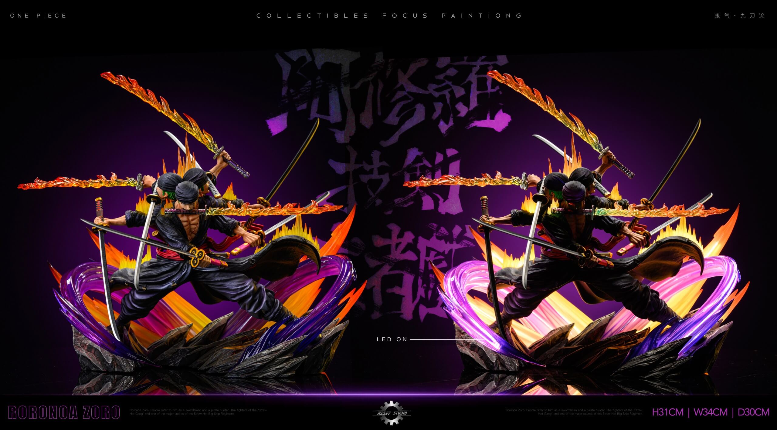 - LED diorama base with translucent resin Haki arcs and flame pillars