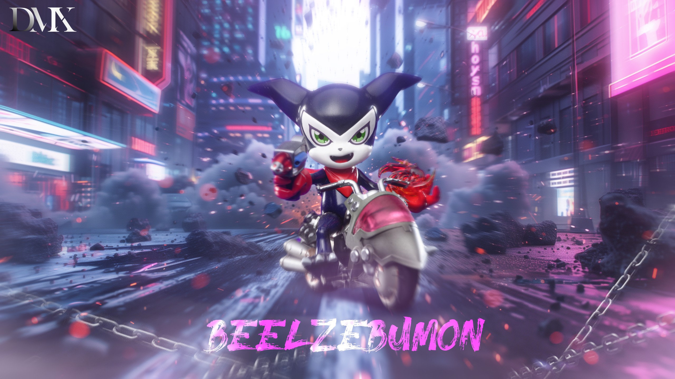 - Beelzebumon main statue astride a fully sculpted demon bike