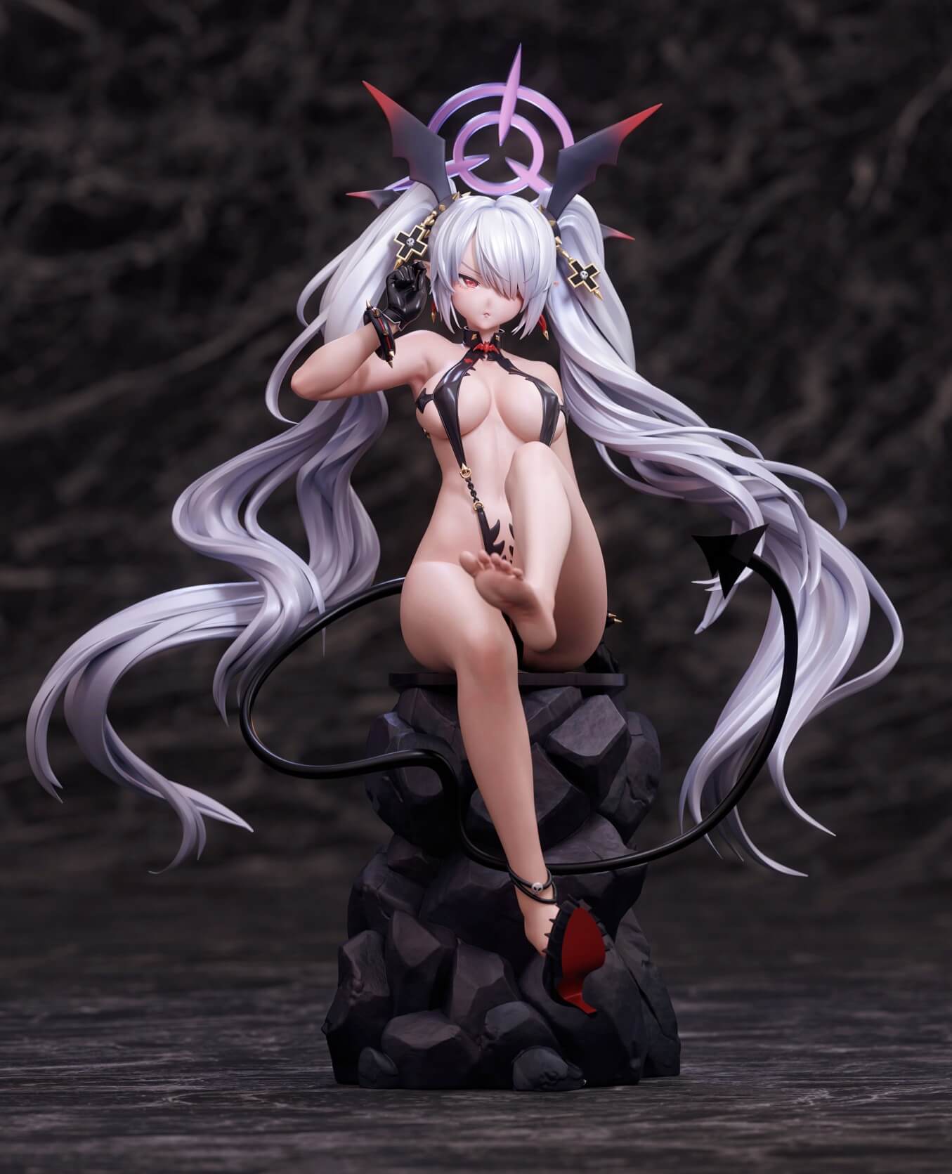 - Features Shiromi Iori in a sitting pose on a rock-textured base, dressed in a bold, alluring black outfit.