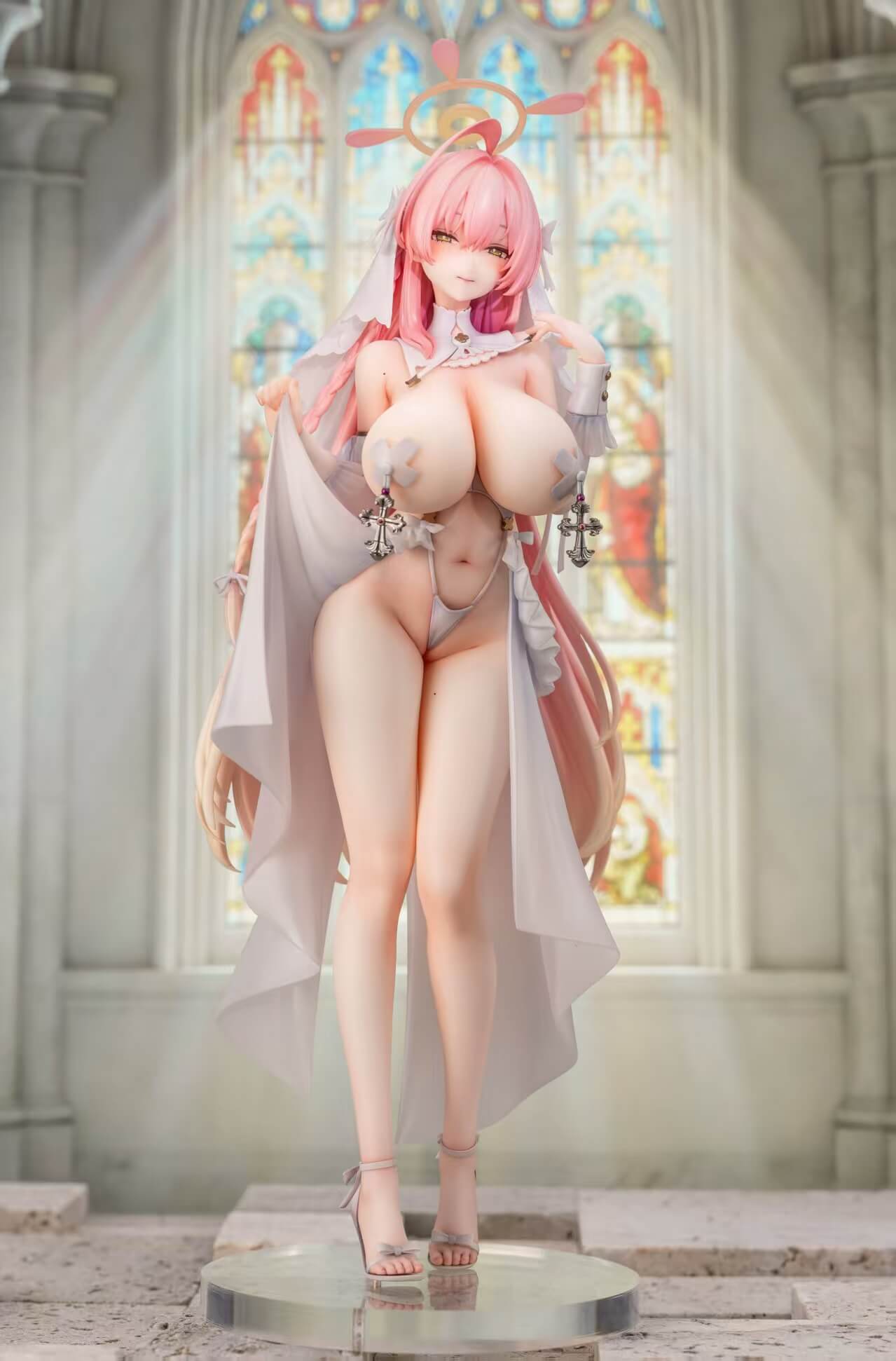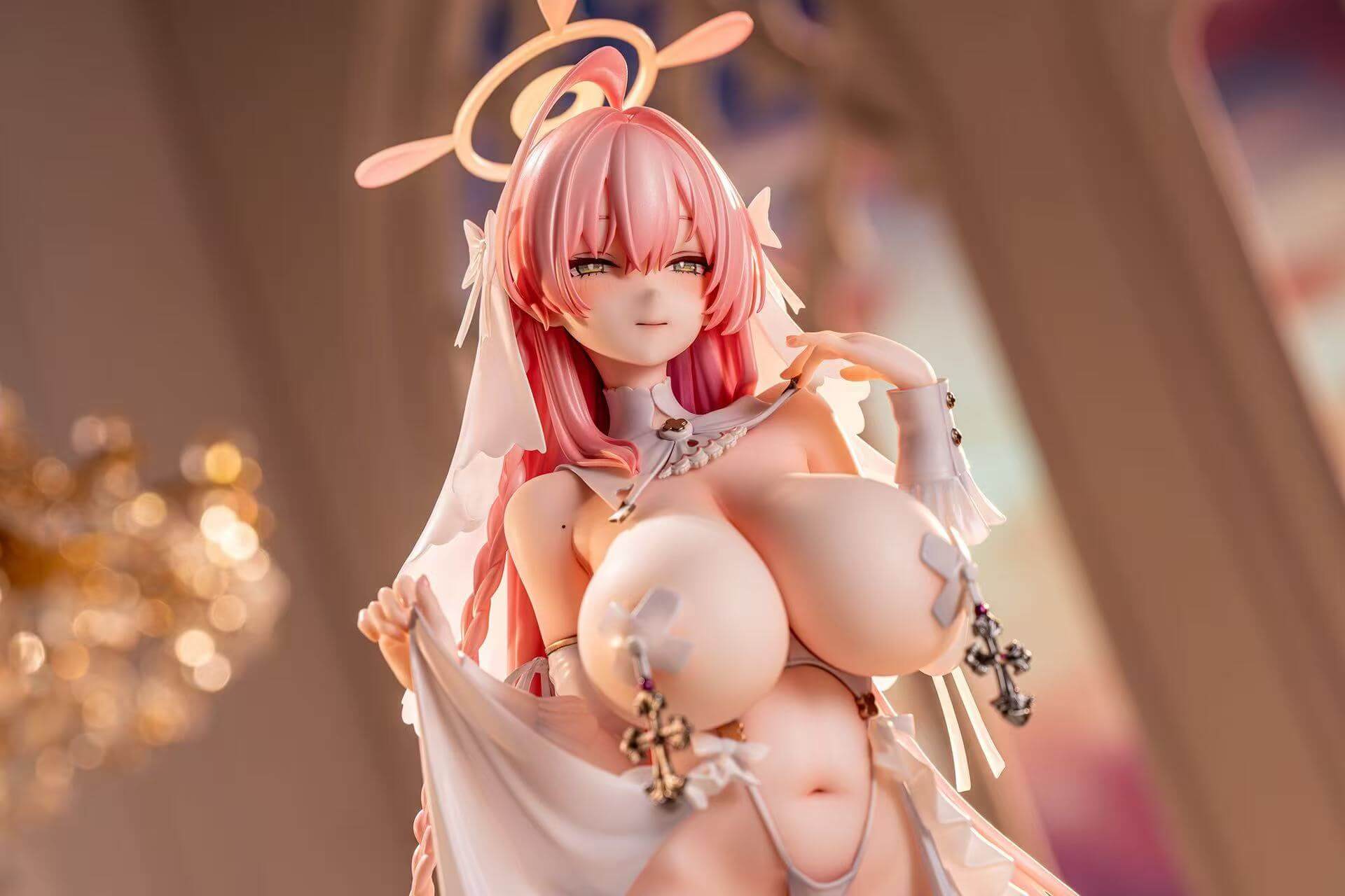 - Flowing white veil and robe — held open to create dynamic, seductive posing possibilities