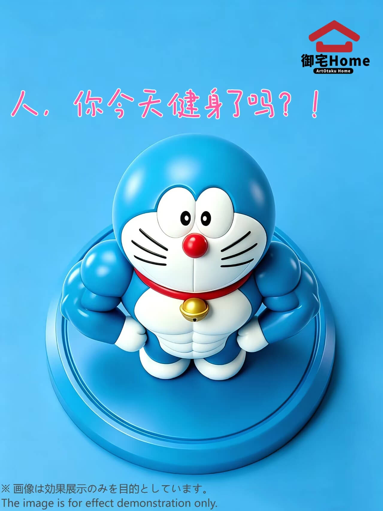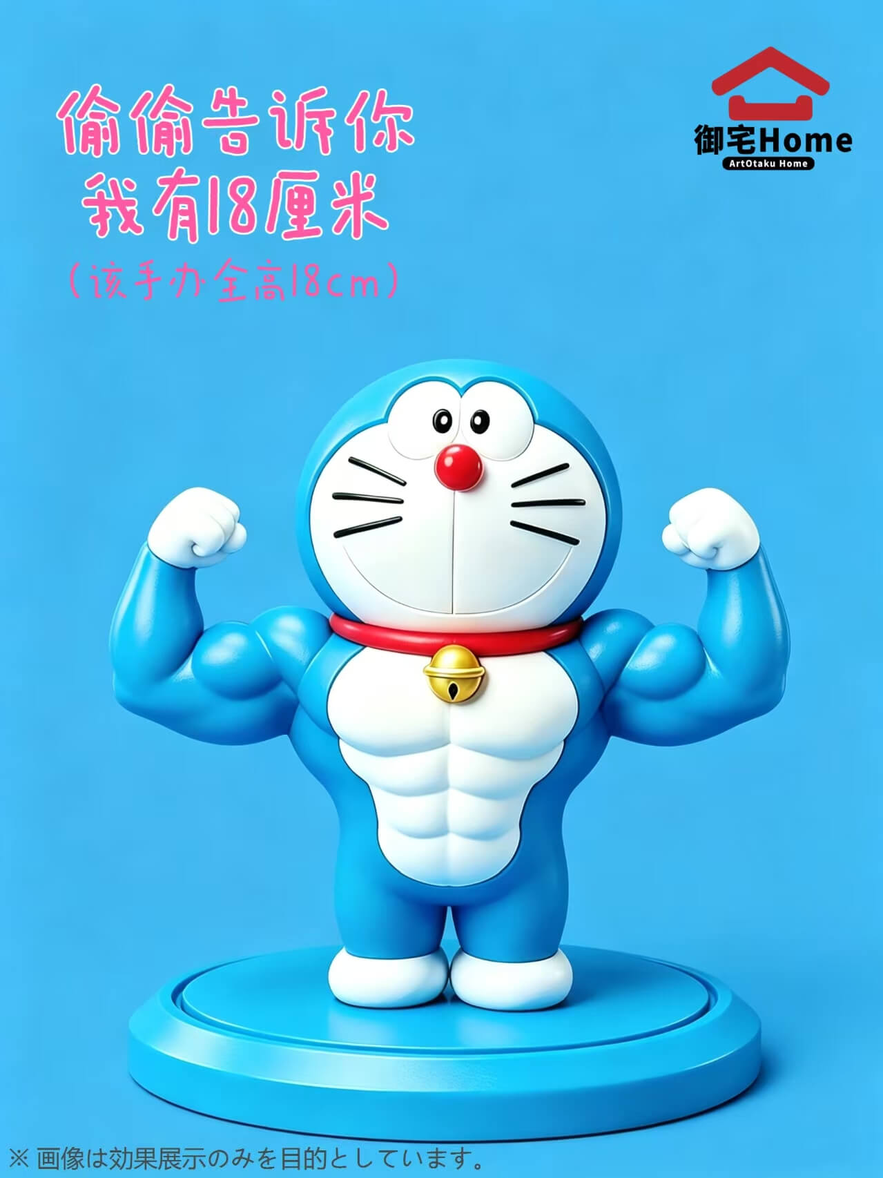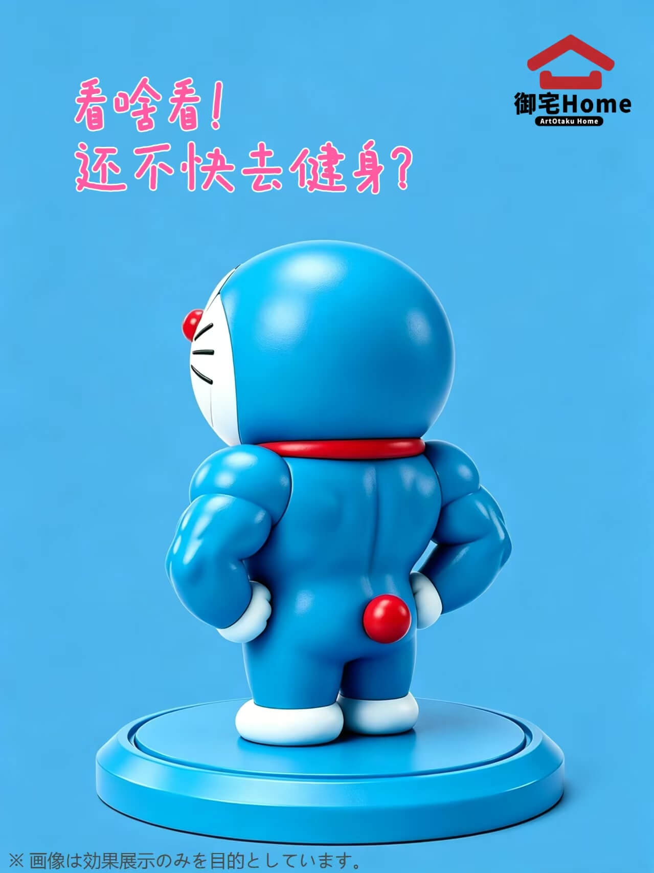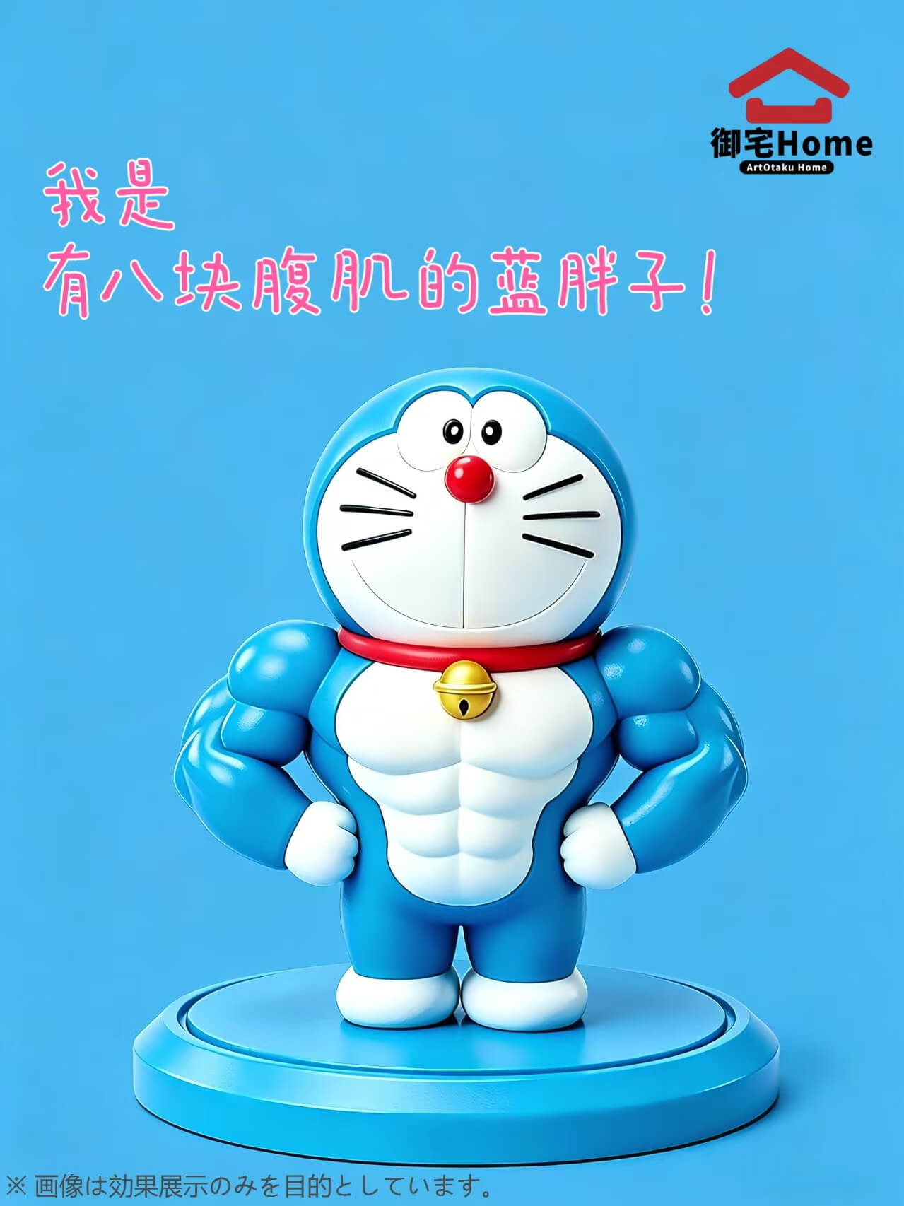- Version 1: Buff Doraemon — fists-on-hips power stance, sculpted eight-pack abdomen, round base included