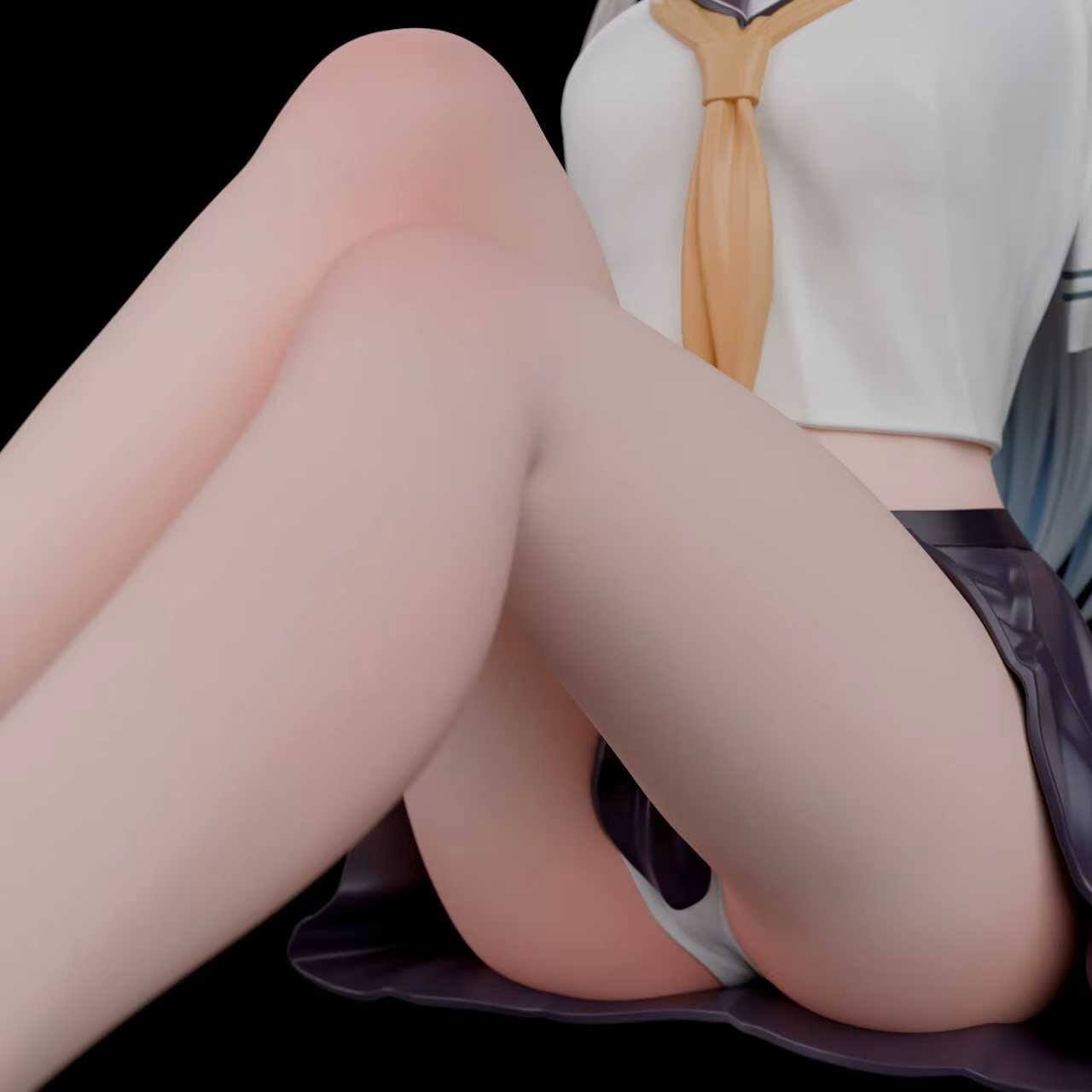 - 1/6 scale seated figure in school uniform costume โ white cropped shirt, amber necktie, dark pleated skirt
