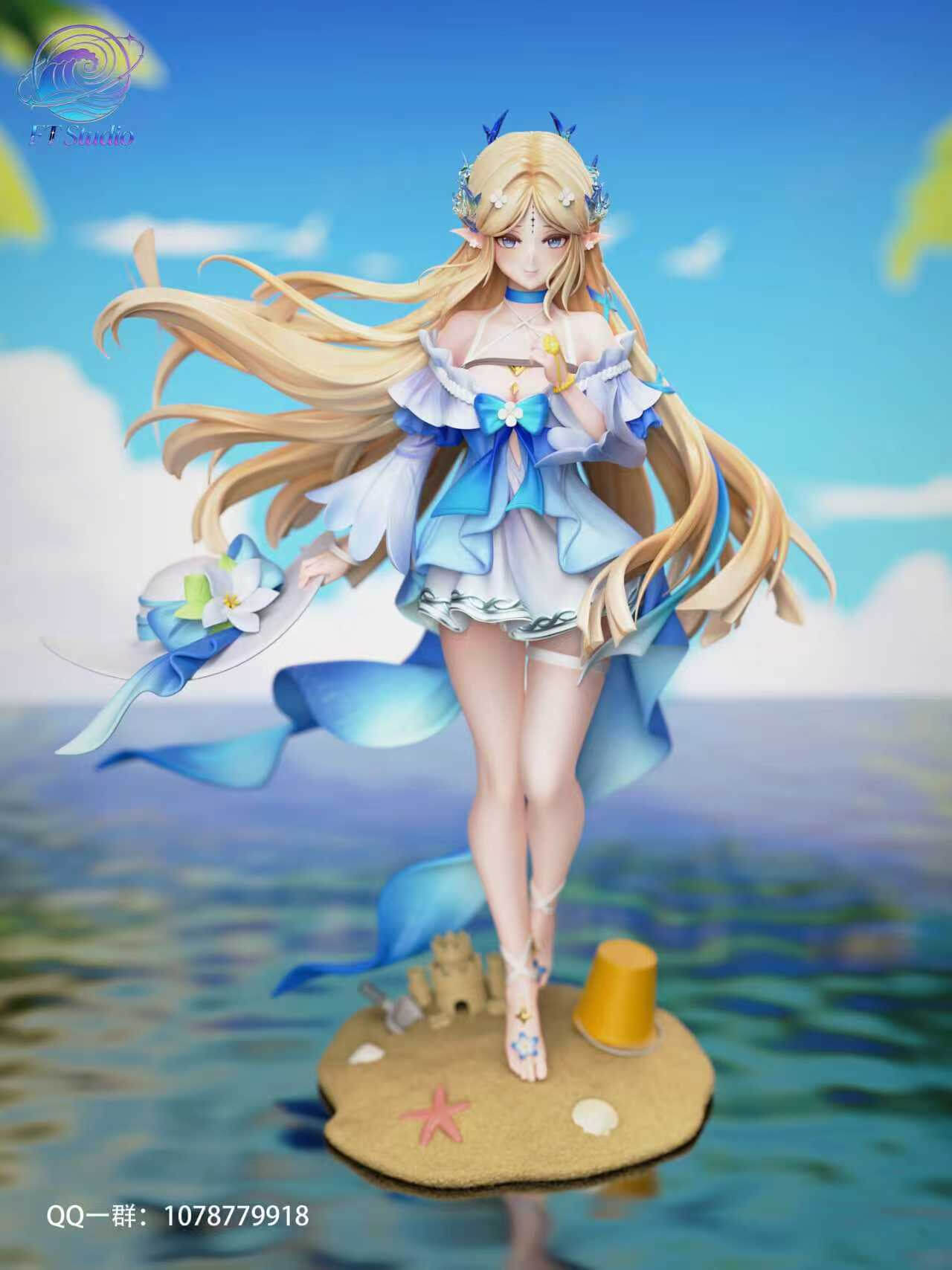- Fixed sculpt โ Cartethyia in beach dress, one hand raised to her chest, the other extended at her side