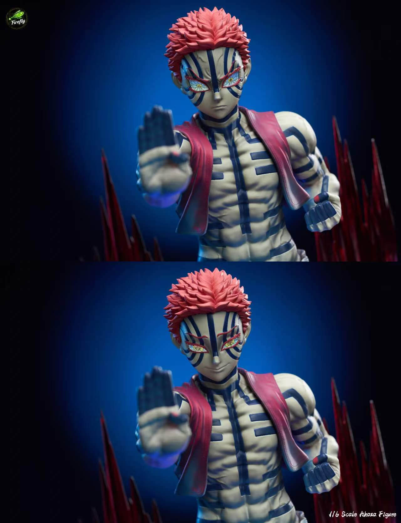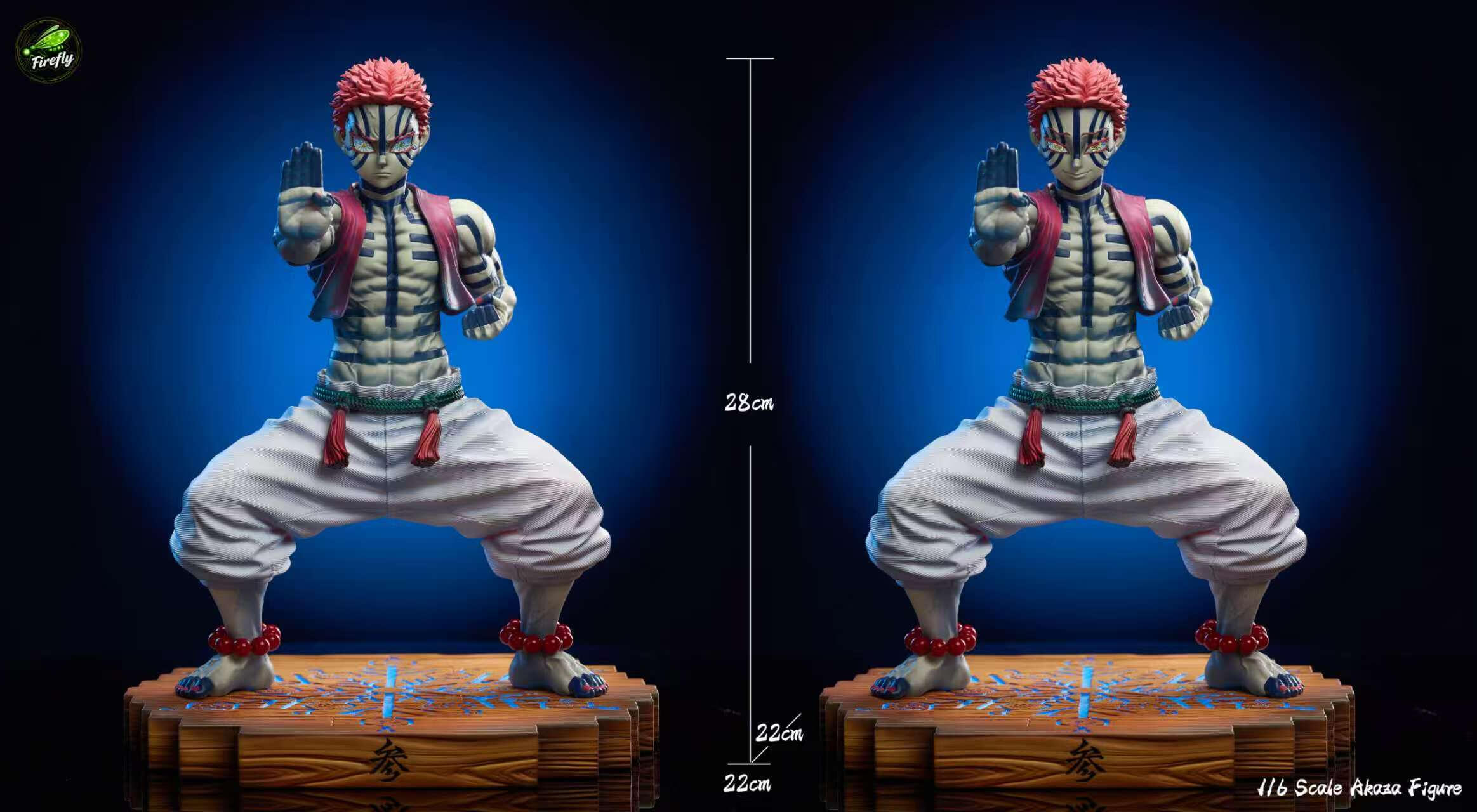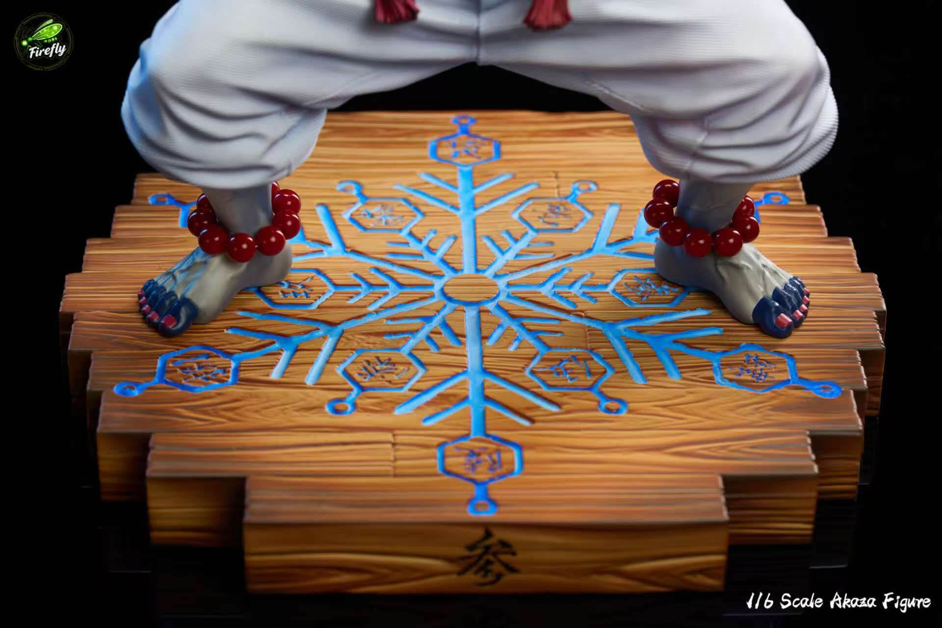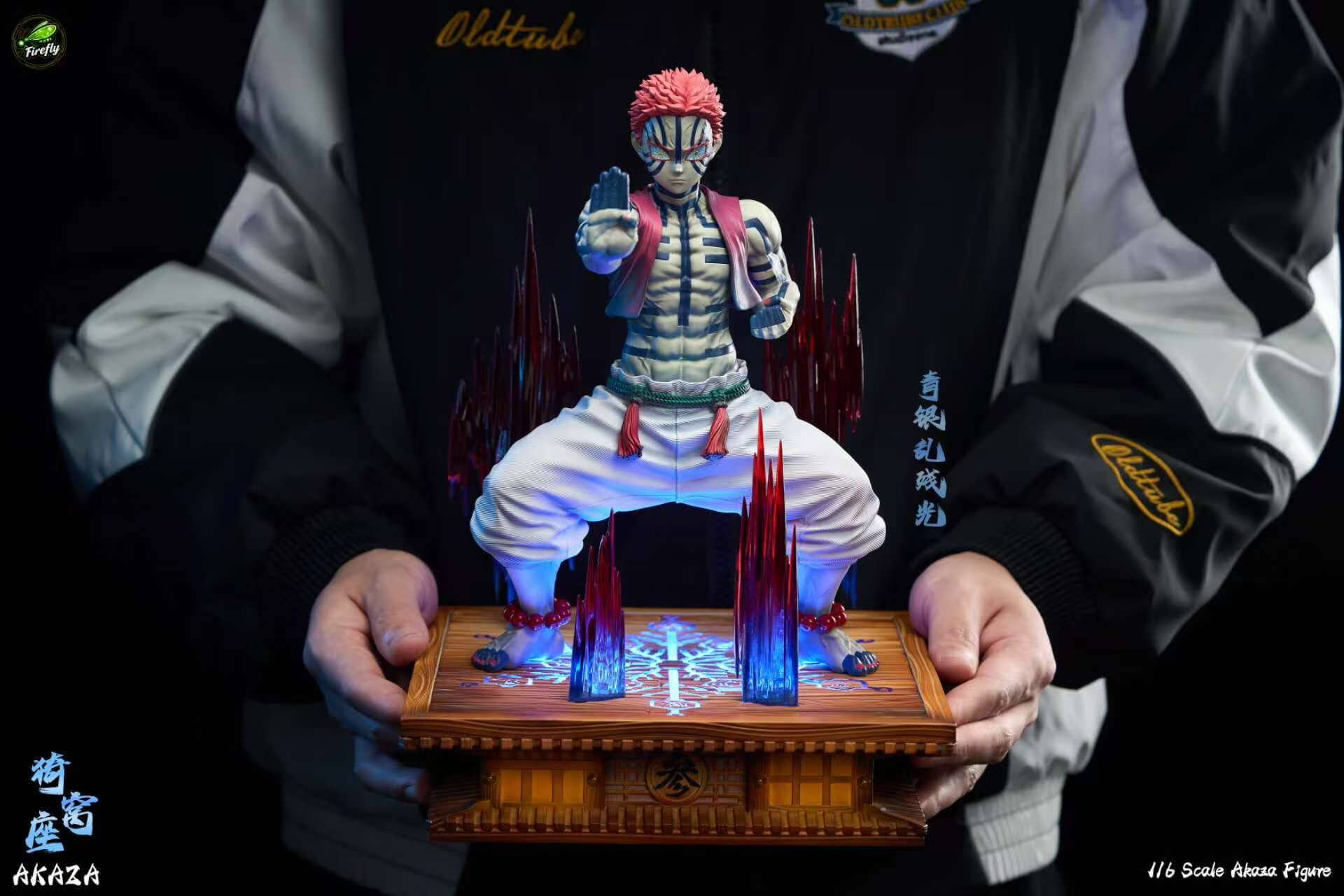 What Deluxe adds: The LED base transforms the display with breathing and steady-on light modes that illuminate the snowflake-like compass pattern from within, while towering translucent red crystal shards behind Akaza dramatically frame the figure and add considerable vertical presence.