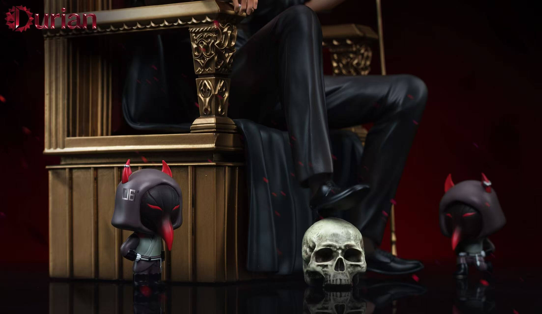 - ร 2 chibi Dark Fang subordinate figures flanking the base โ masked with red-glowing eyes, adding depth and narrative to the scene