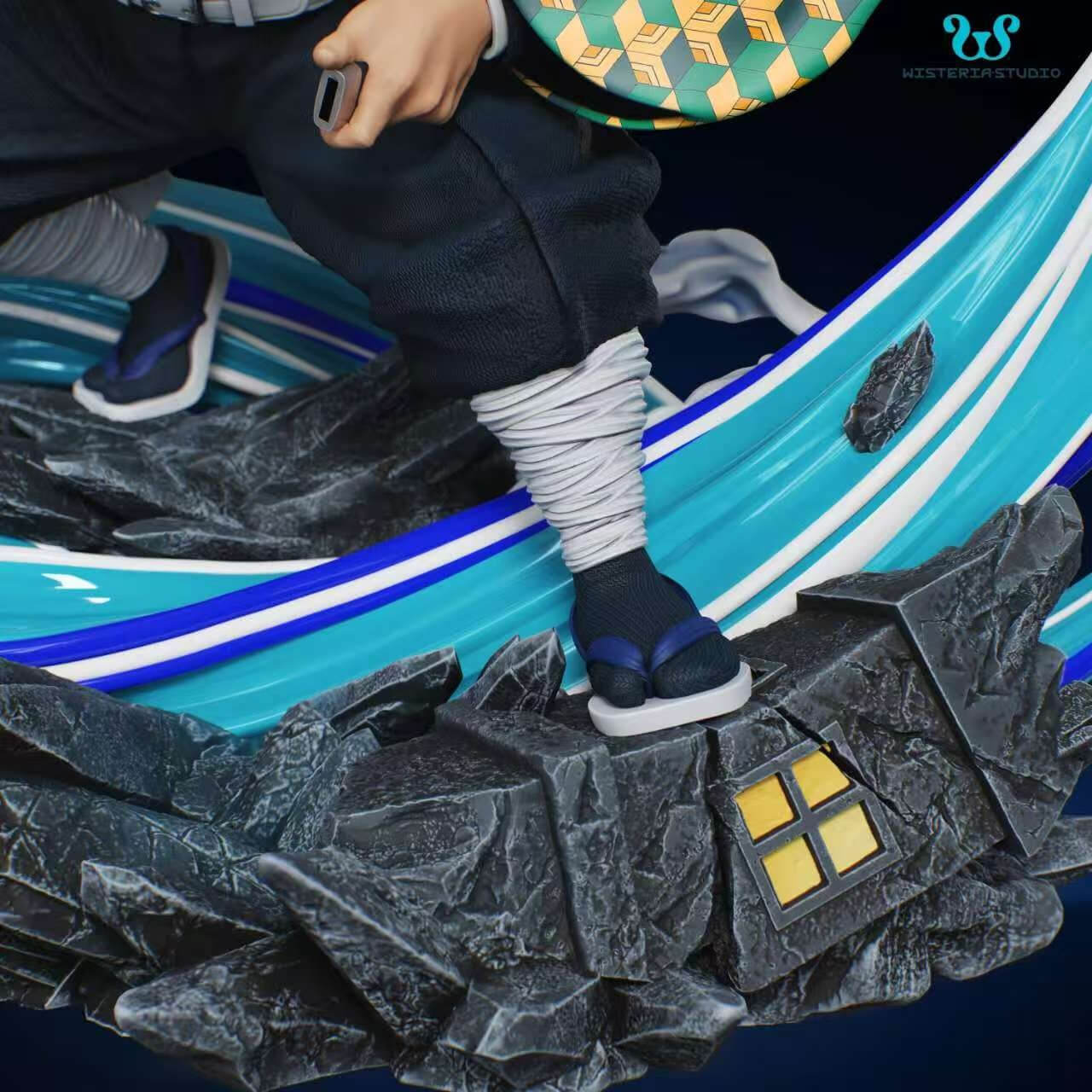 - × 1 main figure — chibi-proportioned Giyu mid-slash, low stance radiating quiet intensity