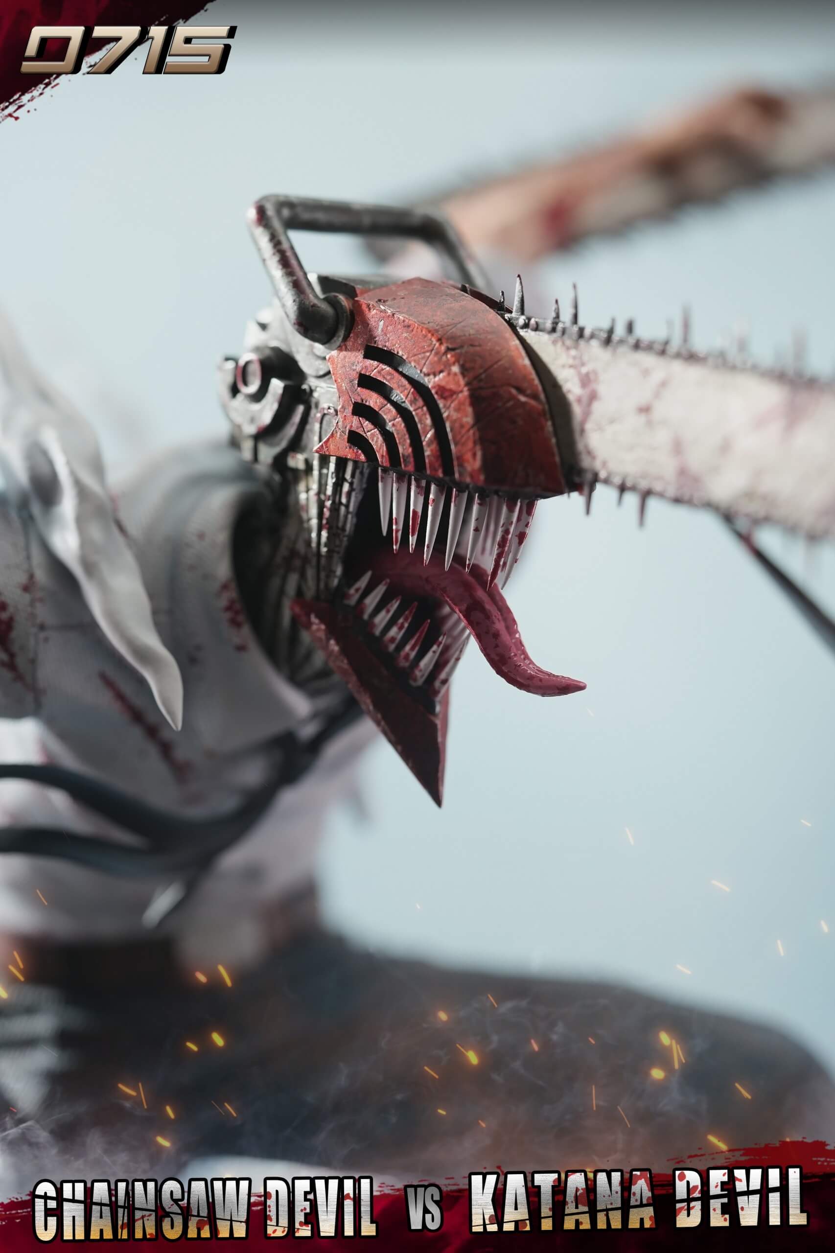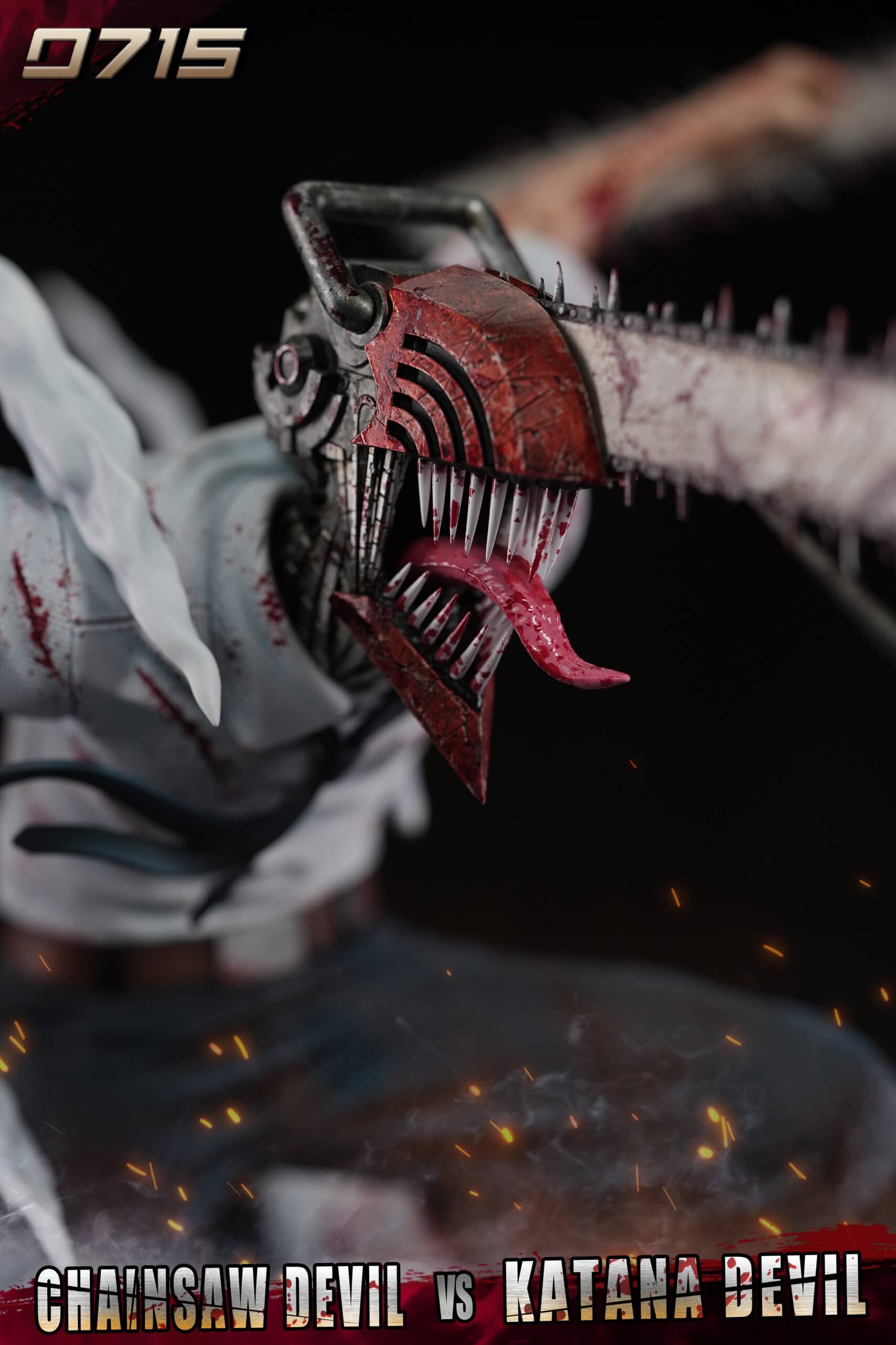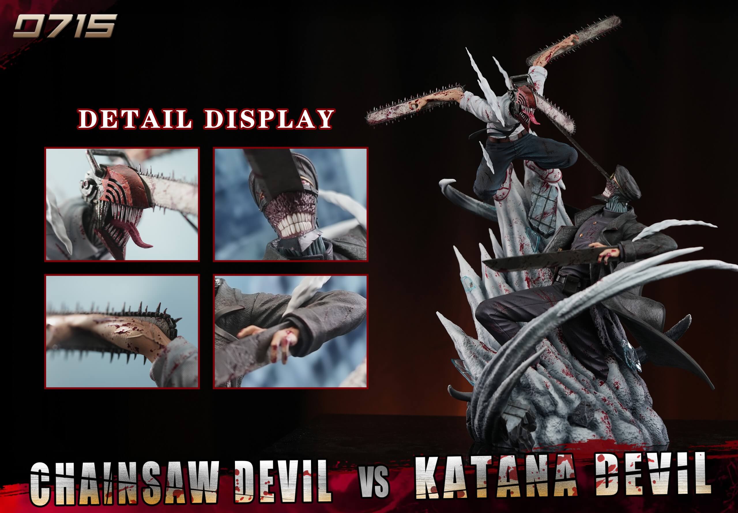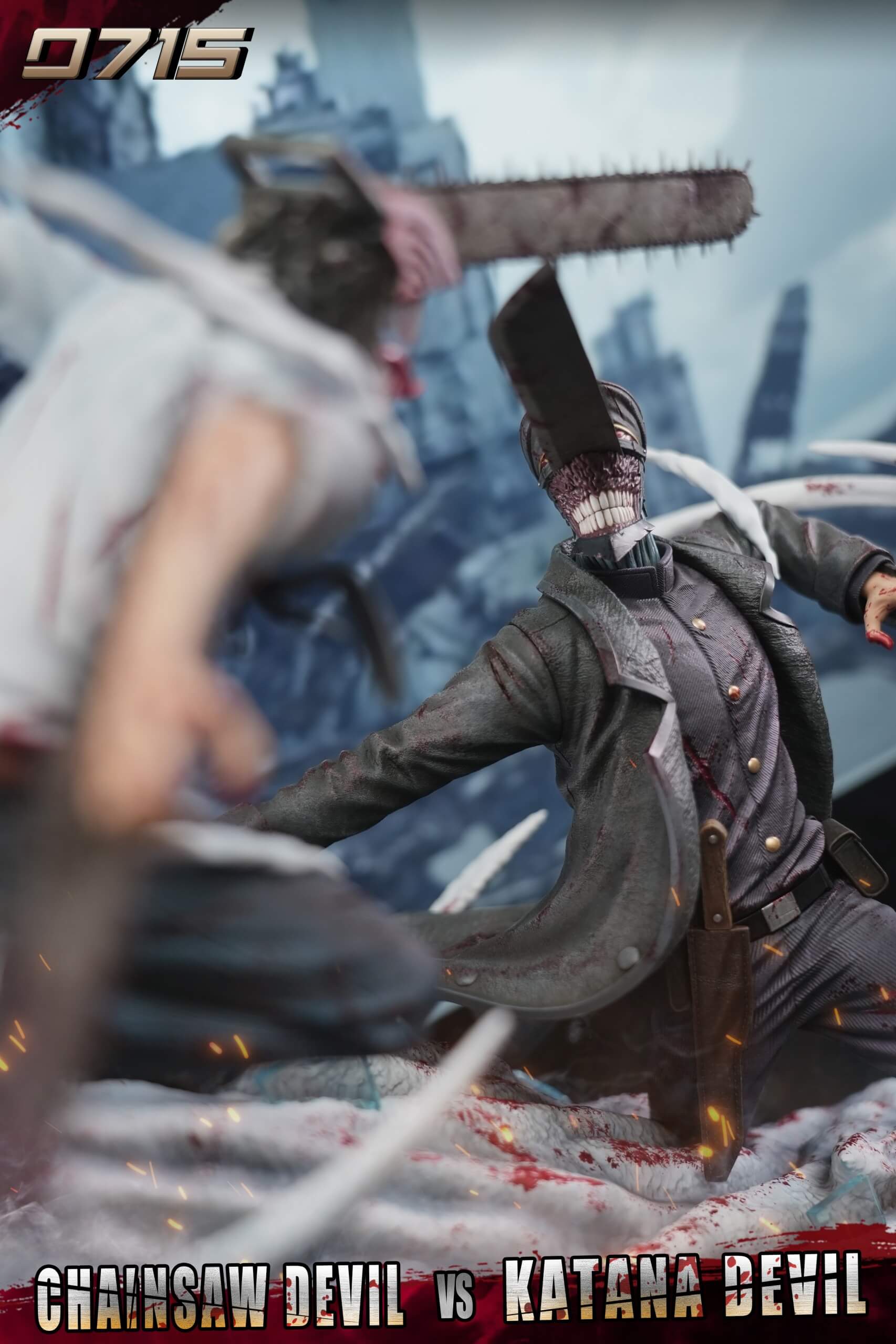 - Features a two-character diorama of Chainsaw Devil (Denji) in a mid-air strike against Katana Devil (Katana Man).