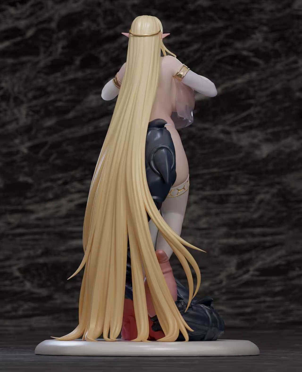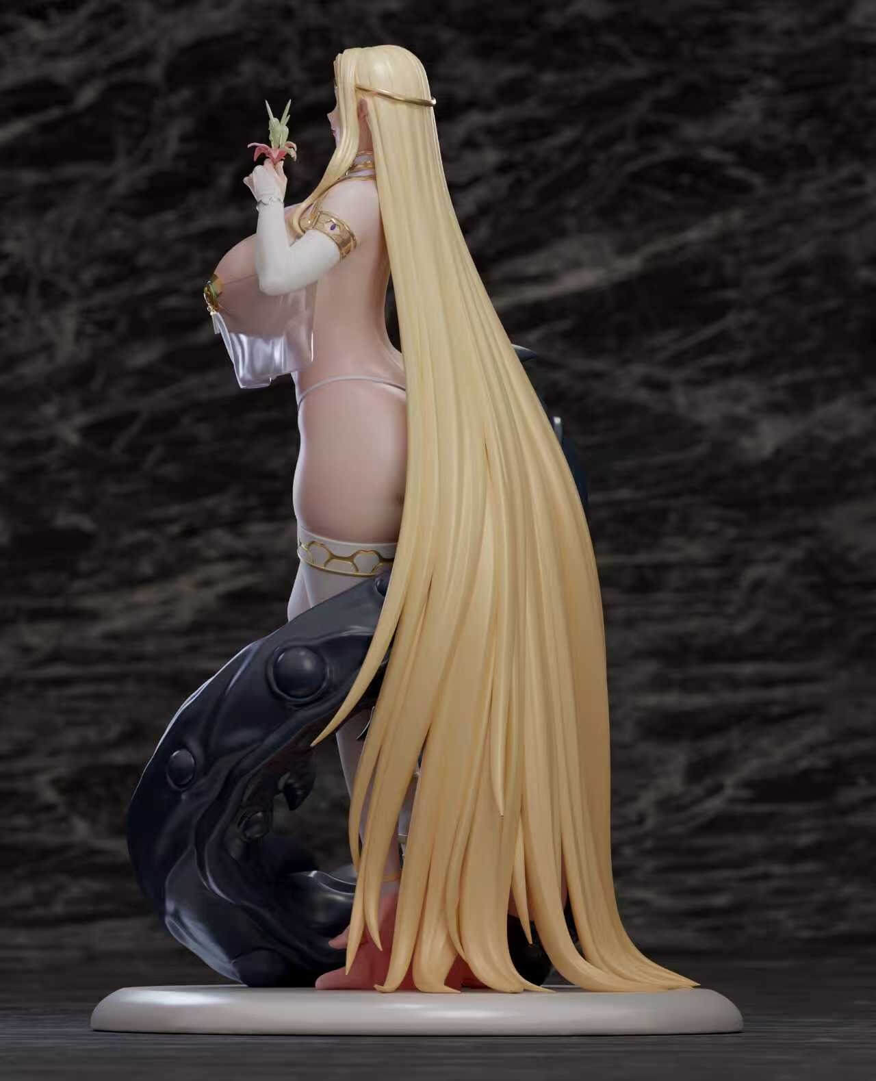 - Cascading Hair Sculpt: An engineering highlight, the hair flows down to the base, framing the character’s silhouette.