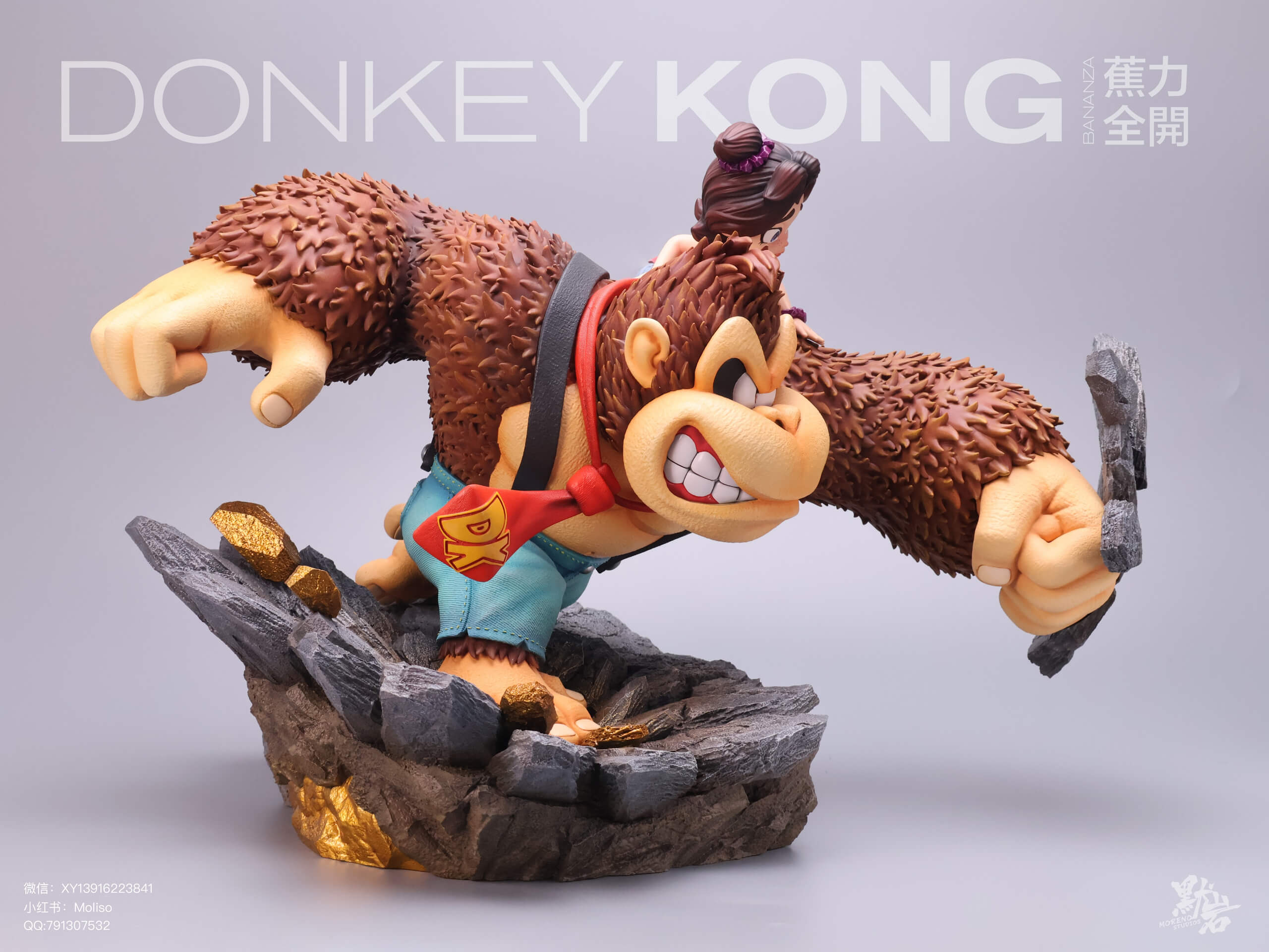 - Plus Version: A larger centerpiece display featuring the large-scale Donkey Kong statue, an included Pauline figure, and an expanded rocky base.