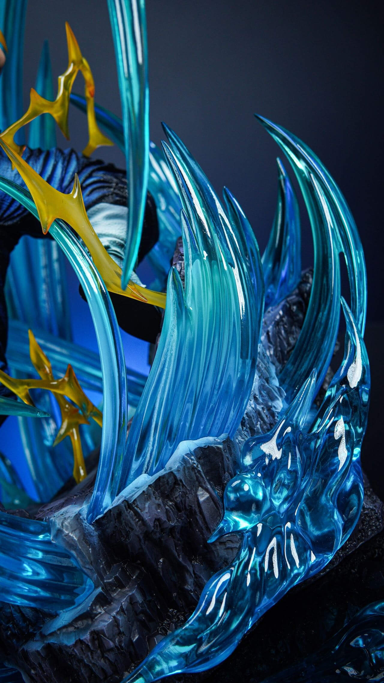 - Both figures appear designed as a matched display pair, sharing a cohesive blue-and-gold energy aesthetic