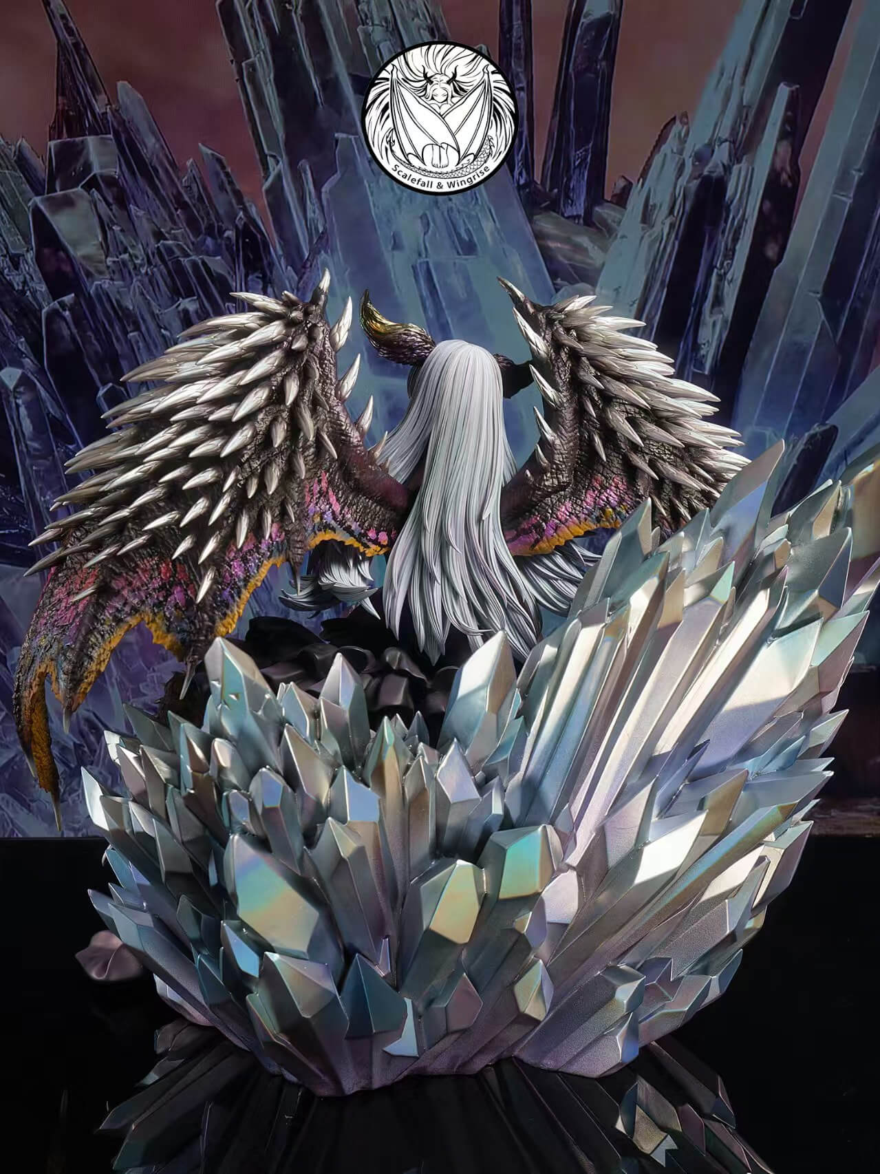 - Articulated dragon tail coiling along the base, scaled with the same textural depth as the wings — rugged, organic, and unmistakably Nergigante
