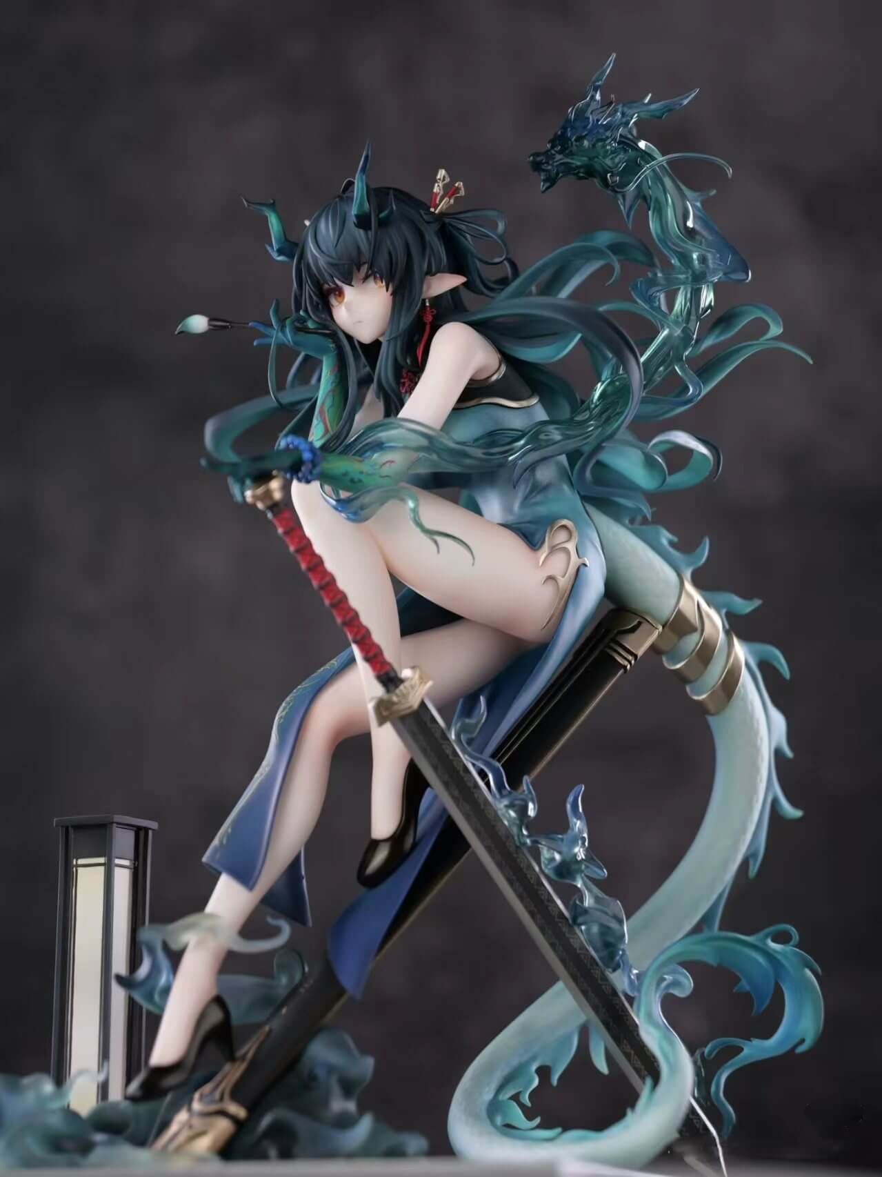 - The stylized base incorporates additional flowing ink effects and a standing lantern.