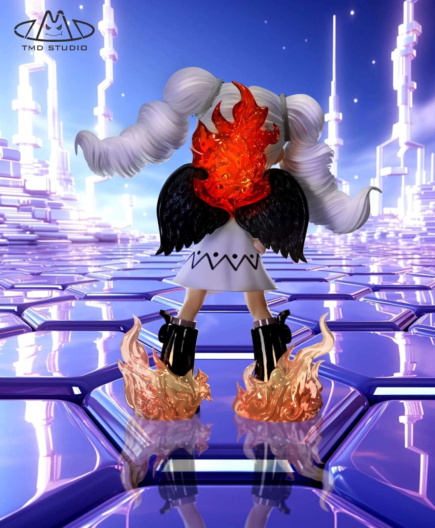 - Both versions include stylized wings, translucent flame effects, and a ghost accessory.