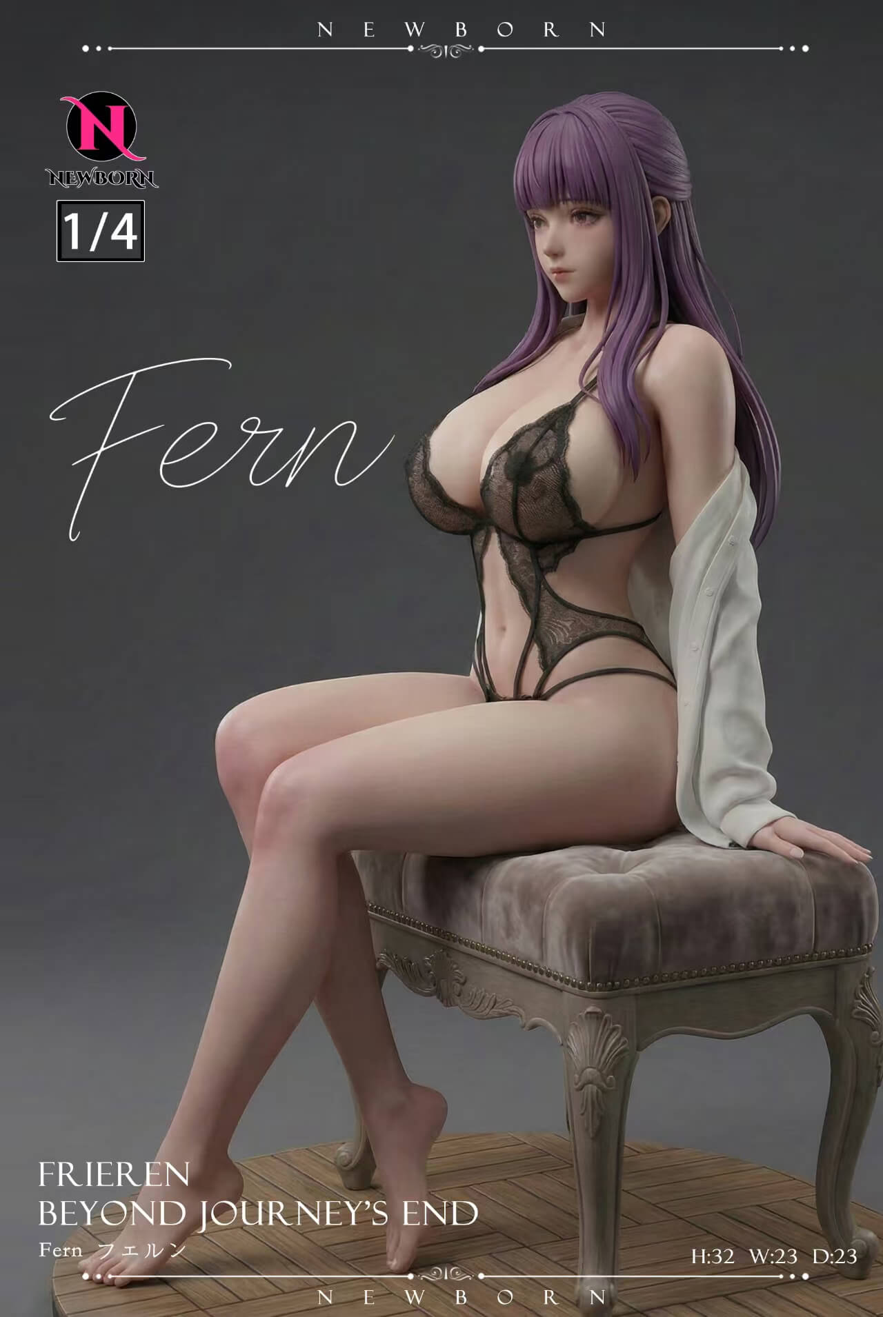 - Full figure sculpture โ Fern seated on an ornate upholstered stool, one leg crossed, posture relaxed yet quietly composed