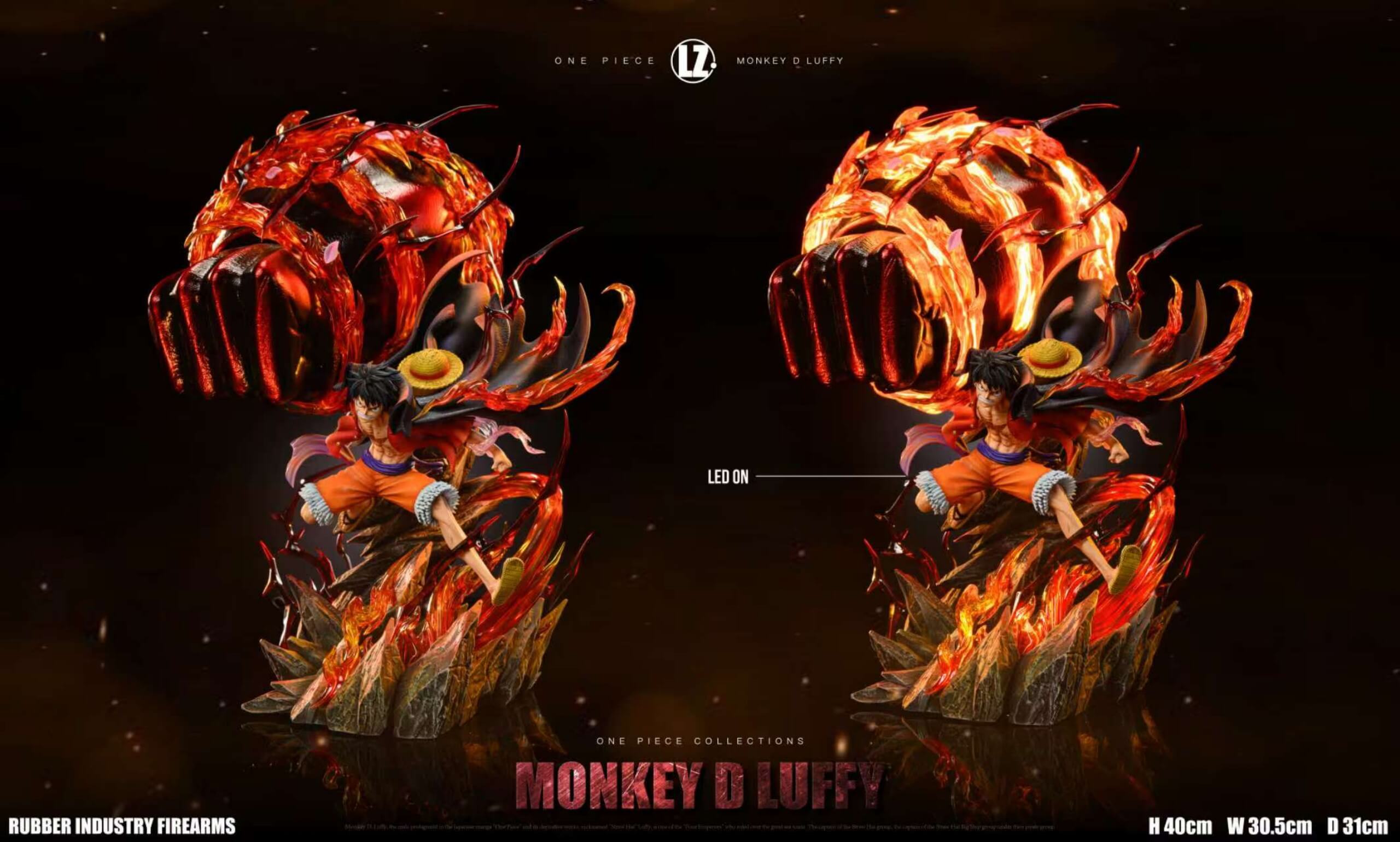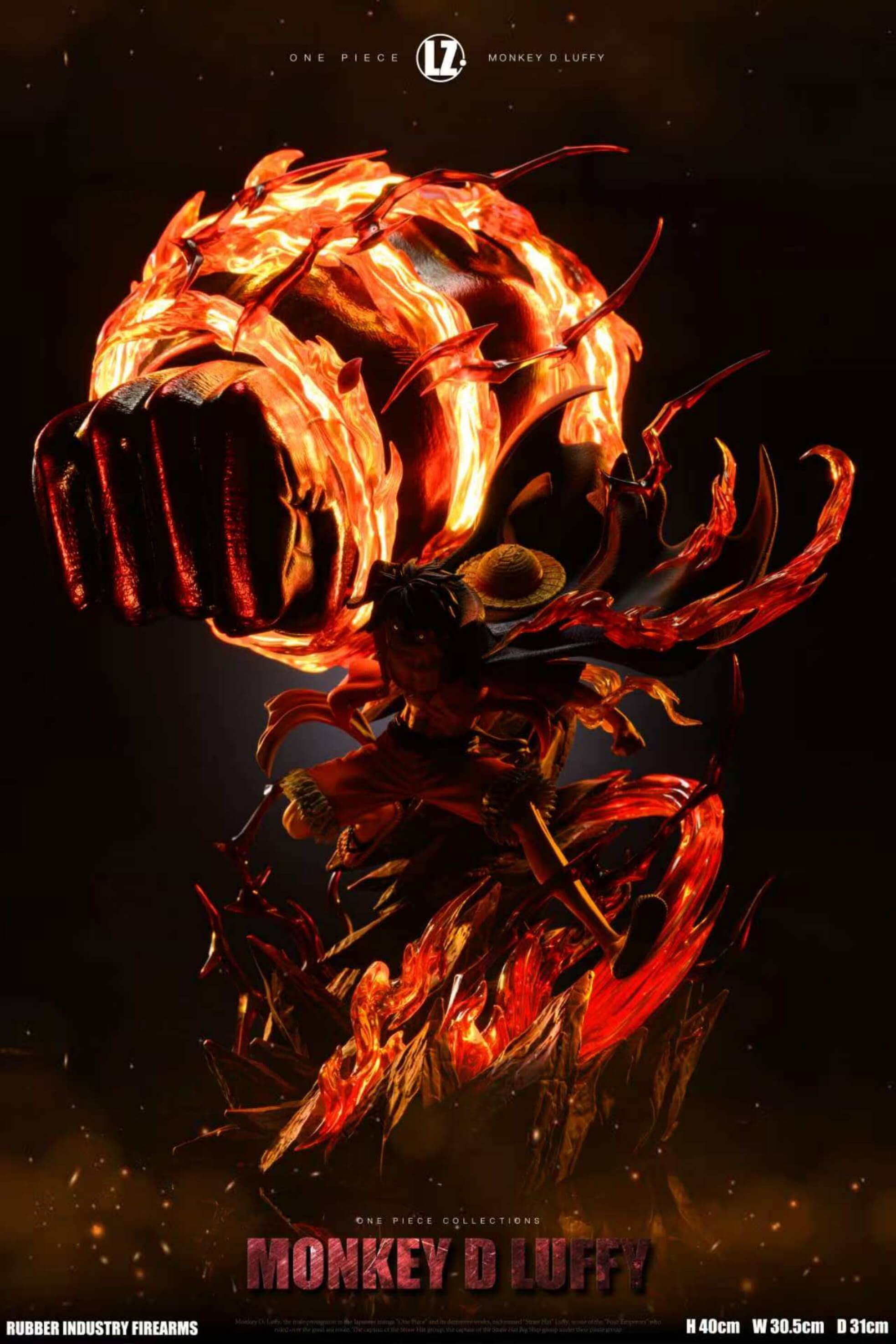 - Both versions are hand-painted in POP scale and depict Luffy mid-Gear Third strike, surrounded by dynamic flame effects.
