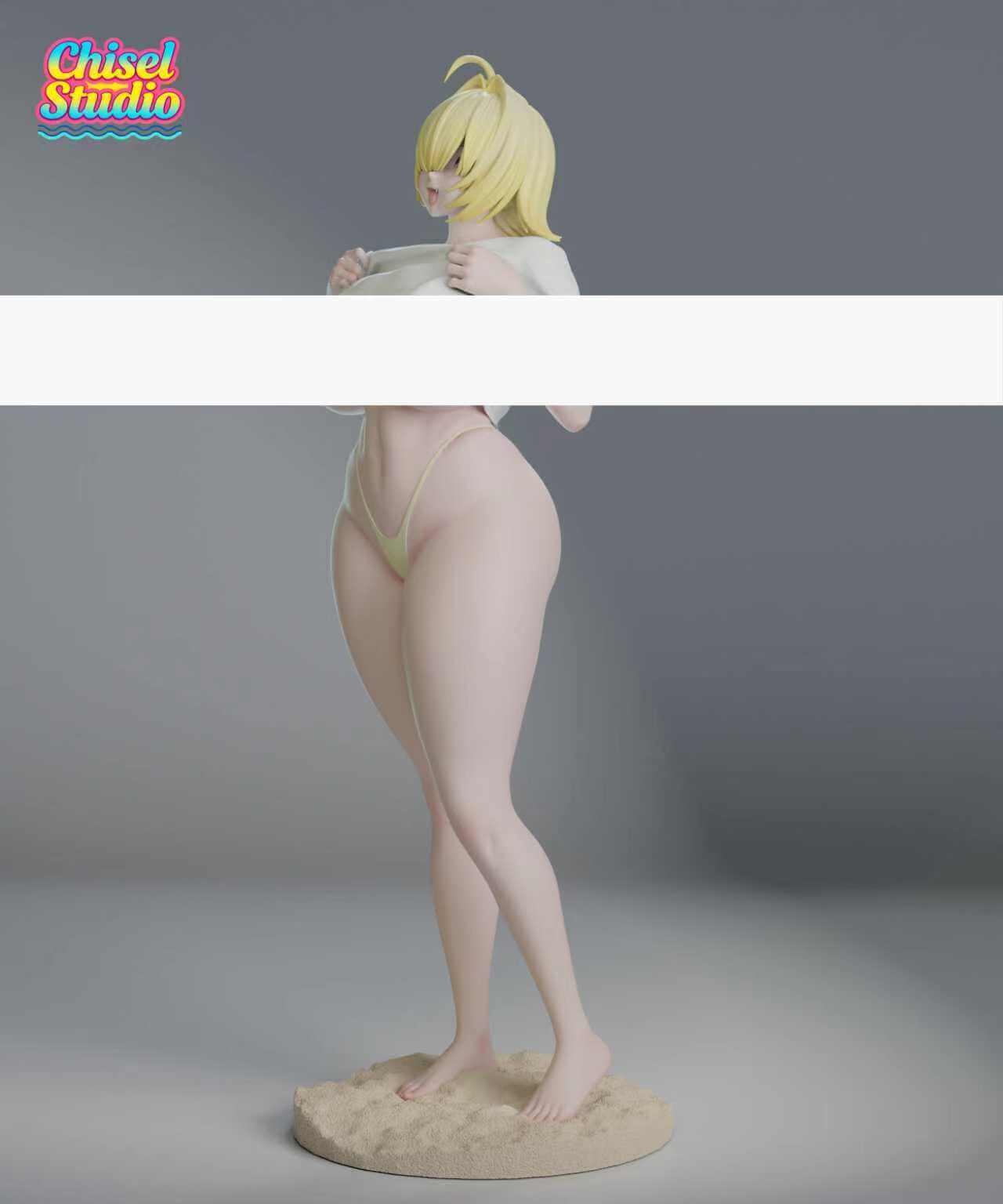 - Integrated sandy display base — grounding the piece with a soft beach-like setting that complements the relaxed, teasing pose