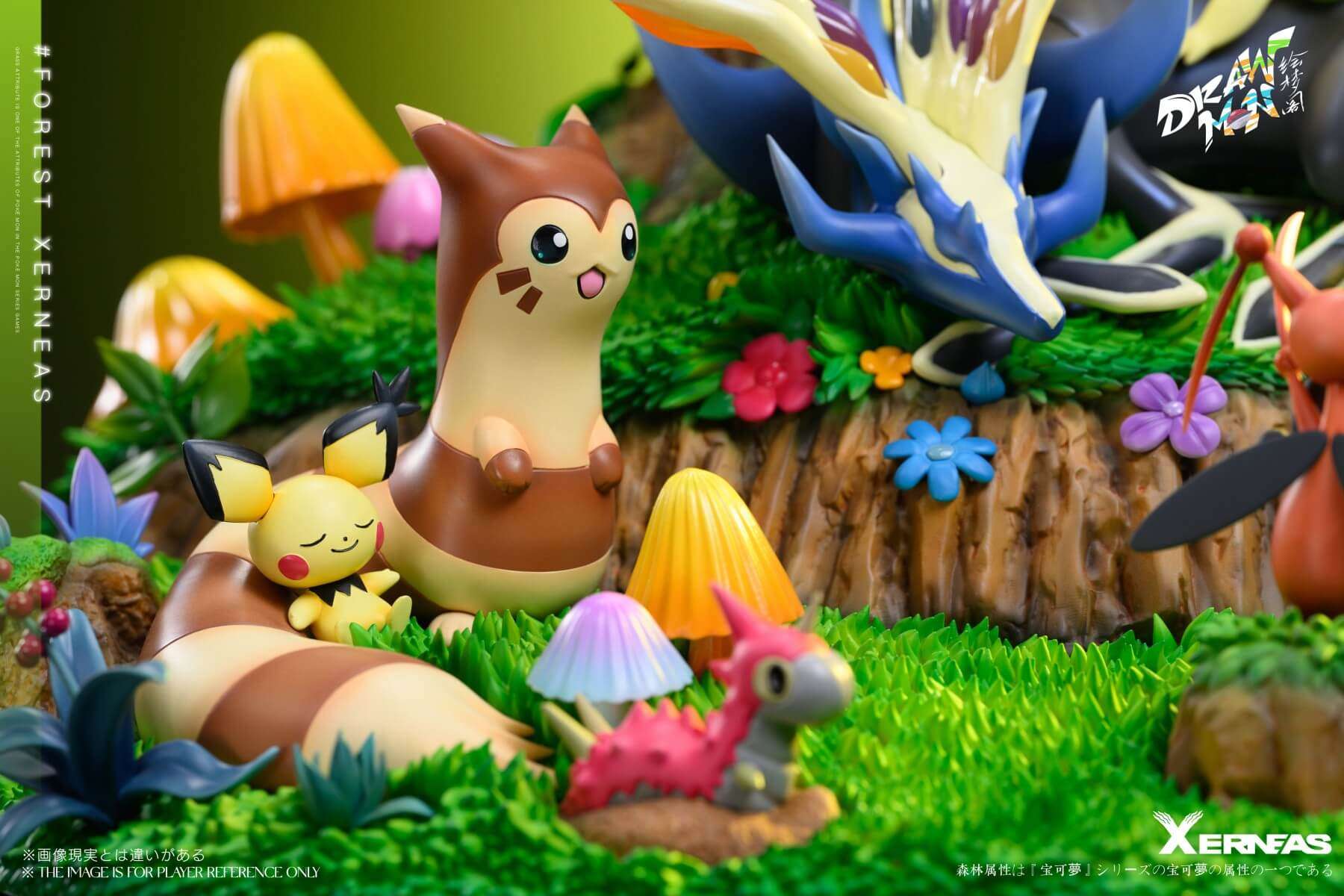 - Features a detailed diorama with Xerneas and 15 other individually sculpted Pokémon.
