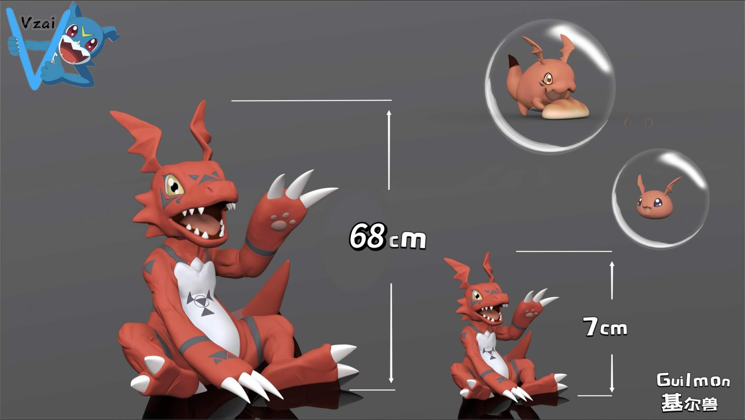 - 1:1 Version: Includes Guilmon (seated pose).