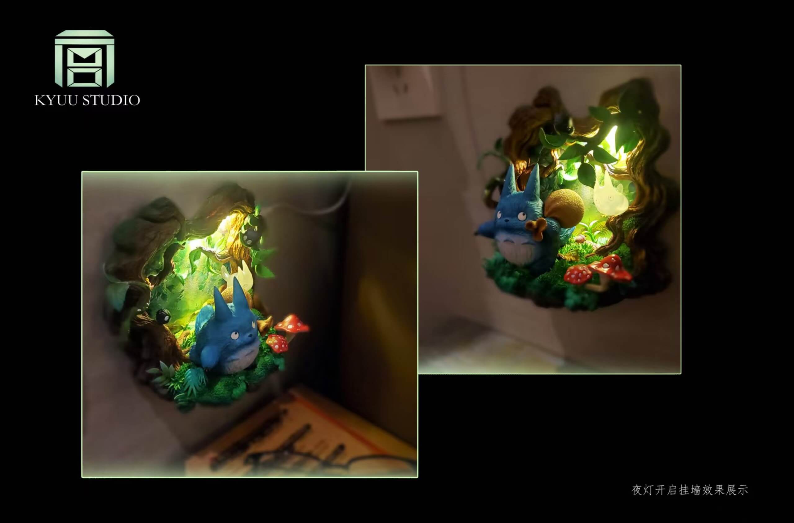 What a fantastic debut piece, capturing a moment of pure woodland magic. A cheerful blue Totoro, acorn pouch in hand, emerges from a tree hollow with a translucent companion and curious soot sprites. This beautifully sculpted diorama features an integrated LED backlight for a warm, enchanting glow. Designed for versatility, it can be displayed on a shelf or mounted on a wall, making it a perfectly charming addition to any collection and space.