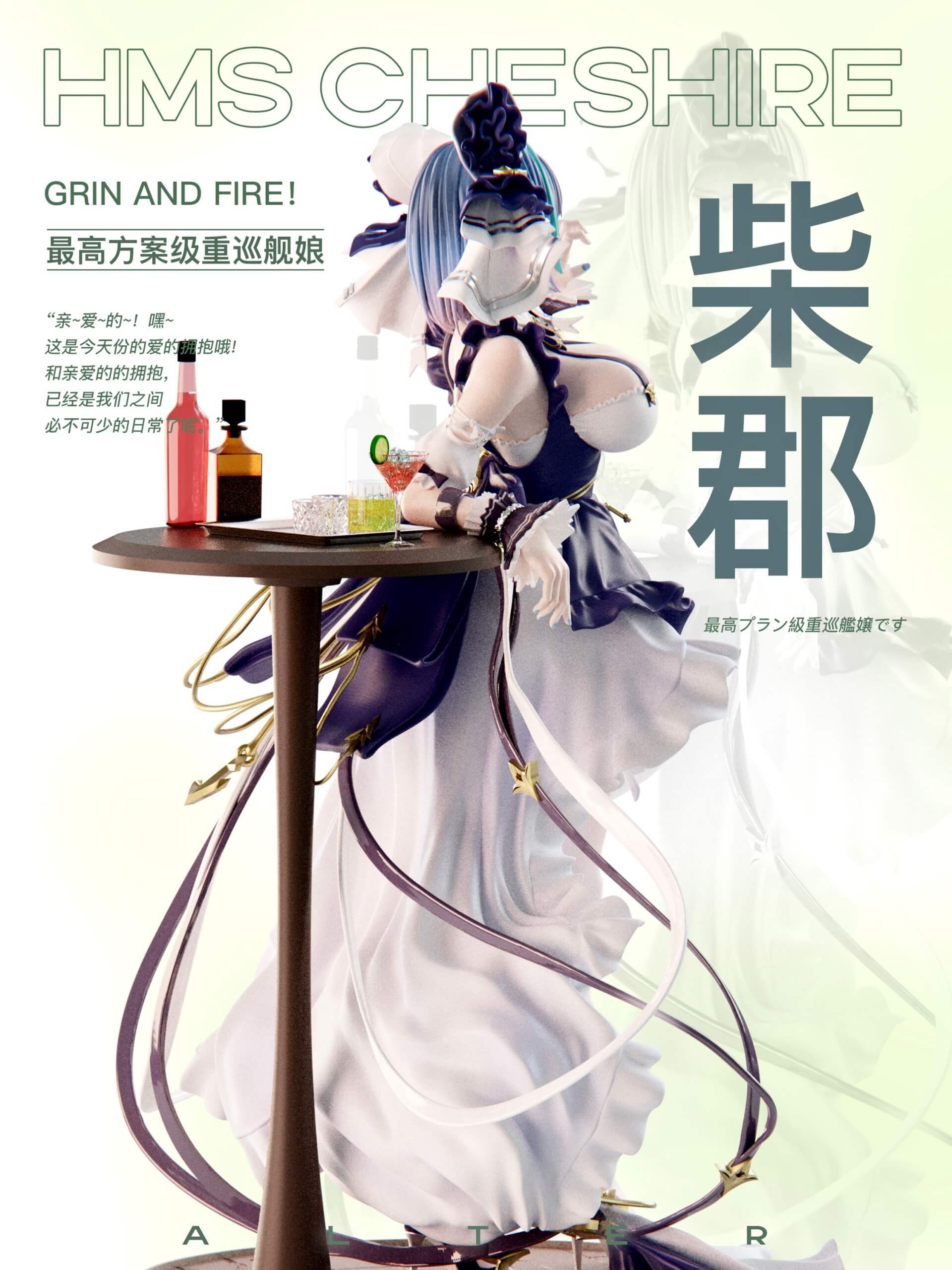 - One (1) HMS Cheshire statue in “Grin & Fire!” party dress