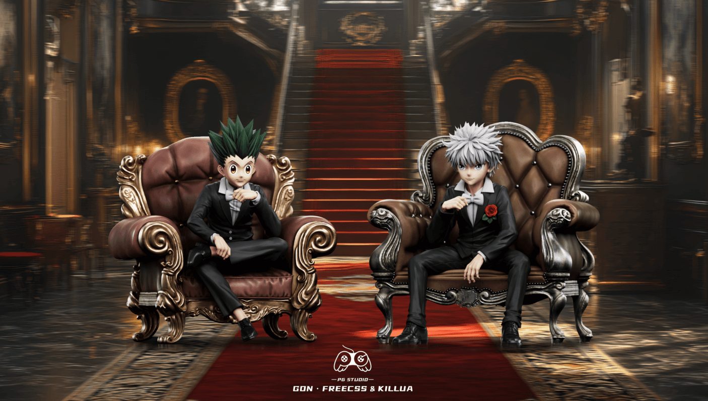 - Each statue includes one (1) character in a formal suit seated on an ornate sofa.