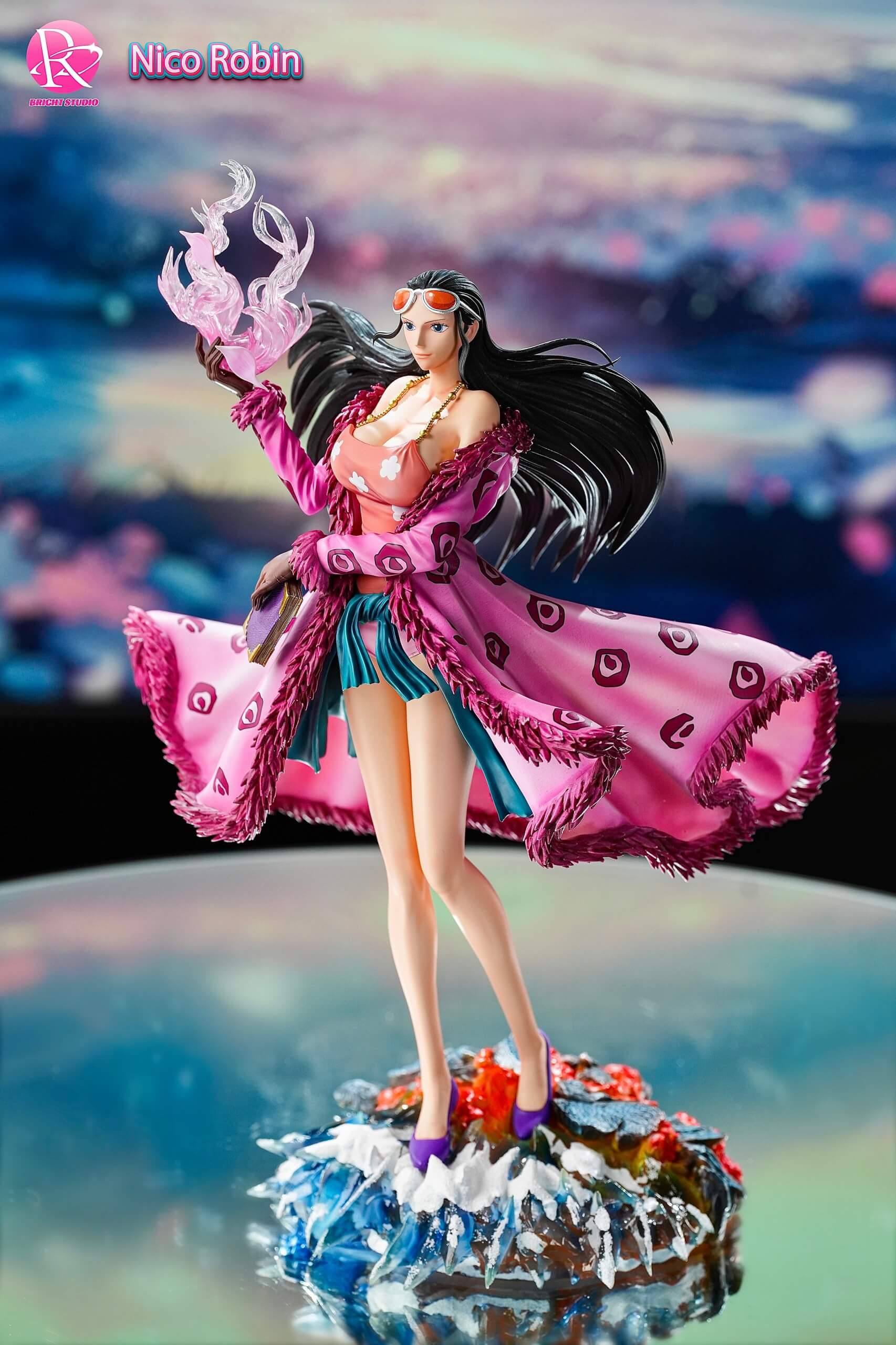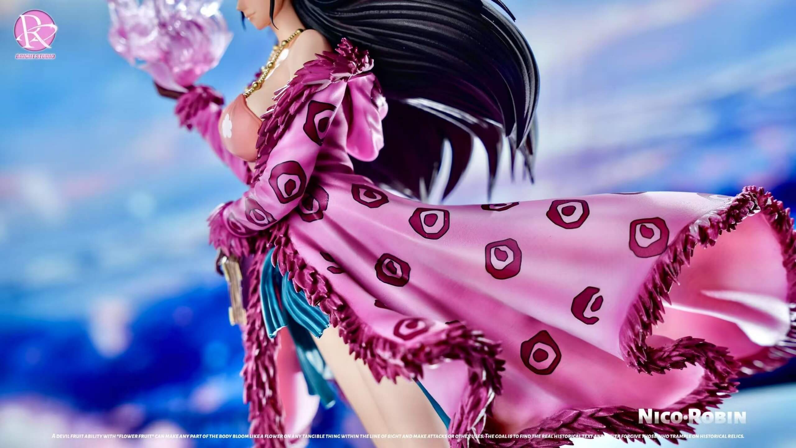 - Nico Robin statue wielding a translucent pink โFlower-Flower Fruitโ effect