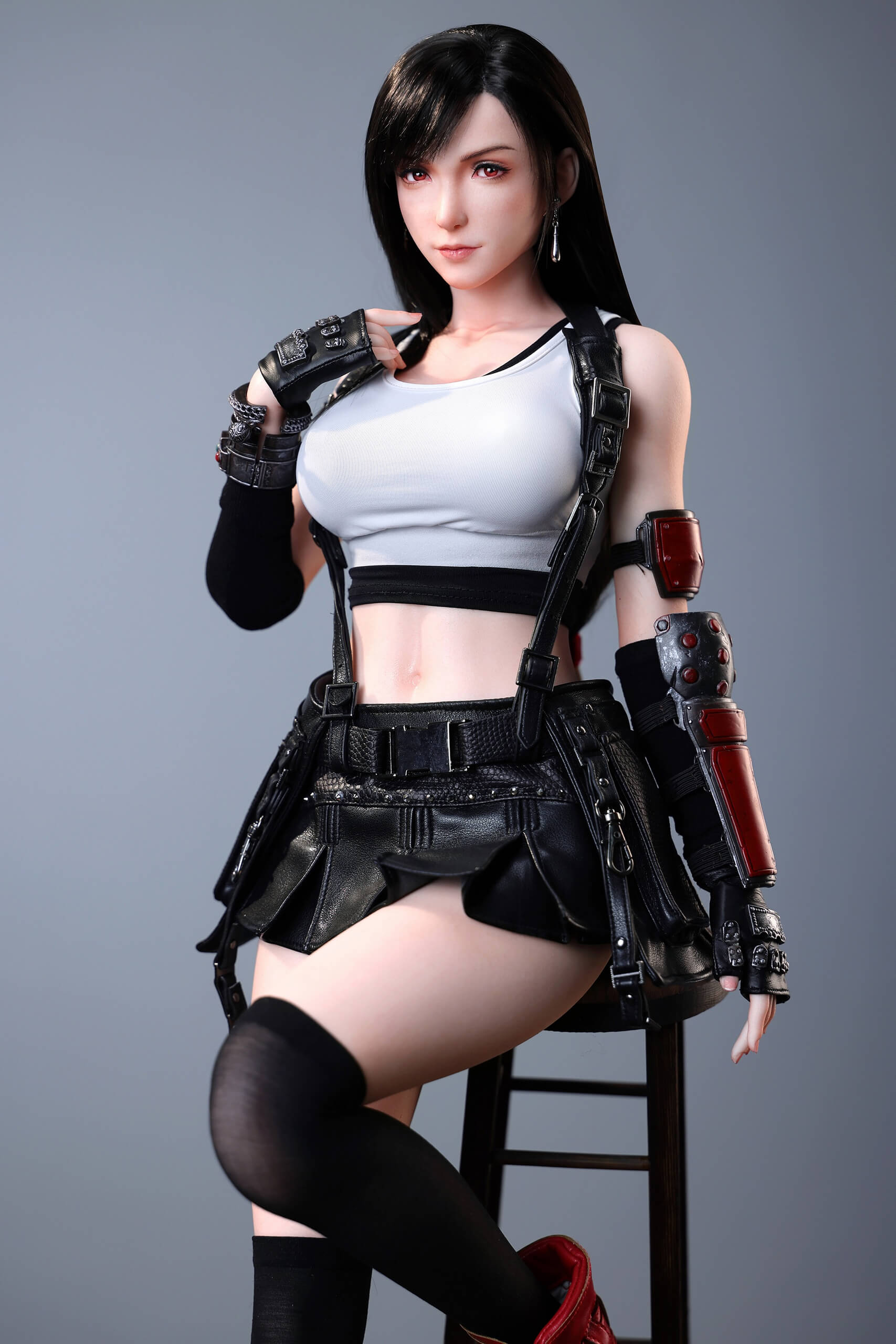 - Combat Suit Set: High-quality, non-staining fabrics featuring the character’s signature white tank top, suspenders, and leather skirt.