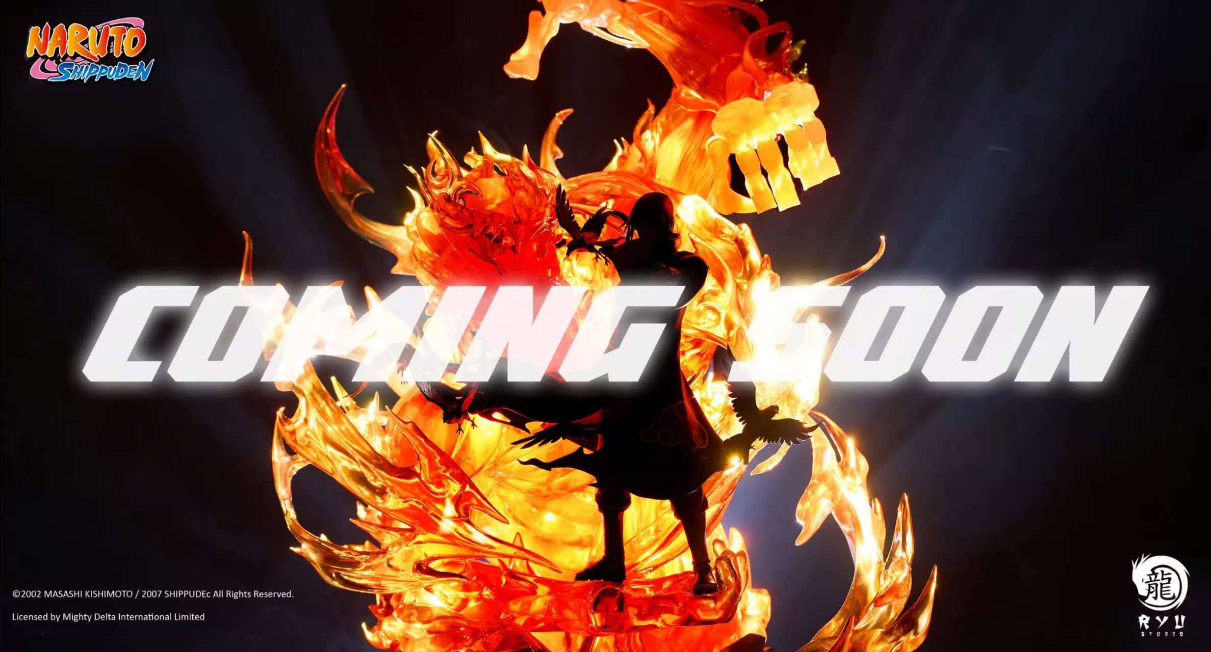 - Main figure โ Itachi Uchiha in Akatsuki cloak, right hand extended mid-technique