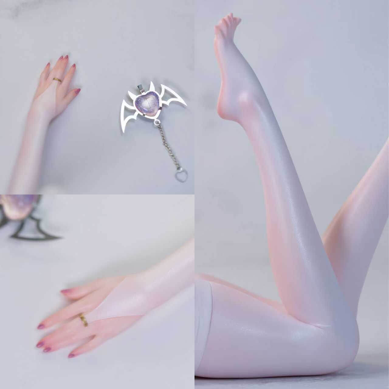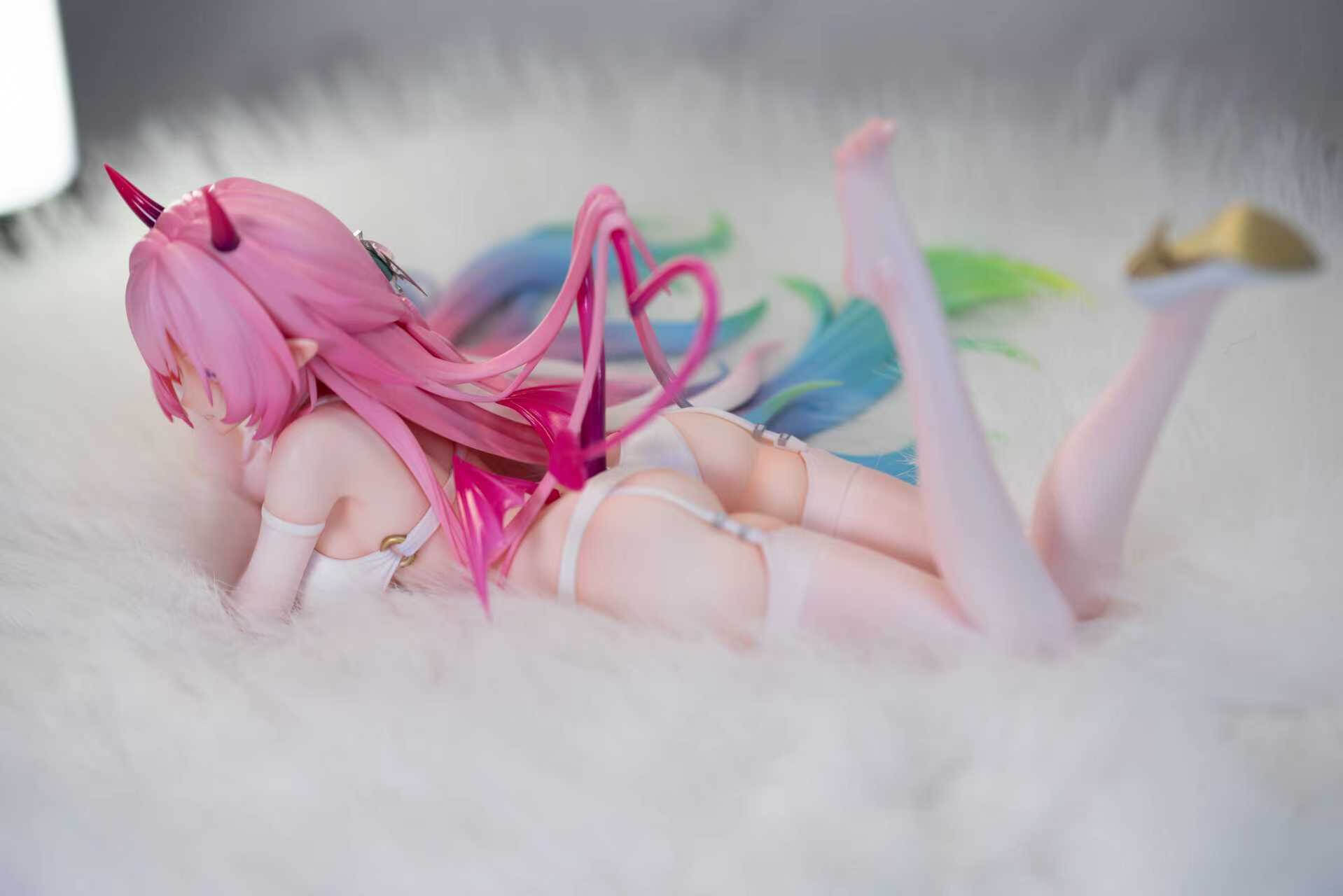 - ร 1 Cyrene figure in reclining “little devil” pose โ chin resting on hands, legs kicked up in a playful, heart-shaped tail silhouette
