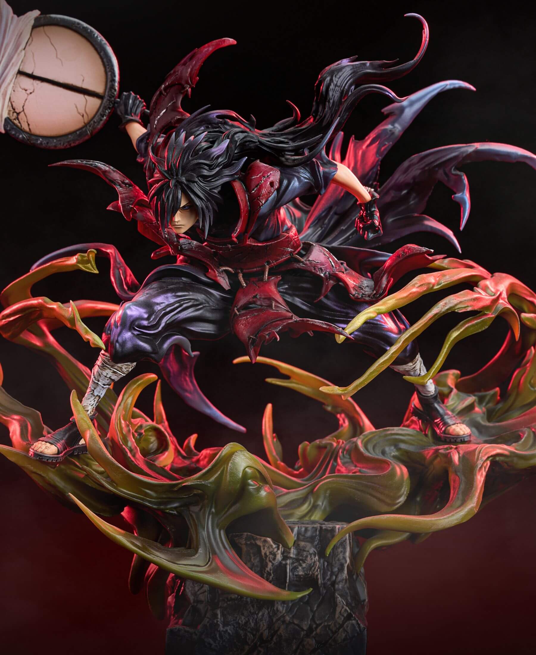 - Uchiha Madara in a dynamic battle pose, wielding his Gunbai