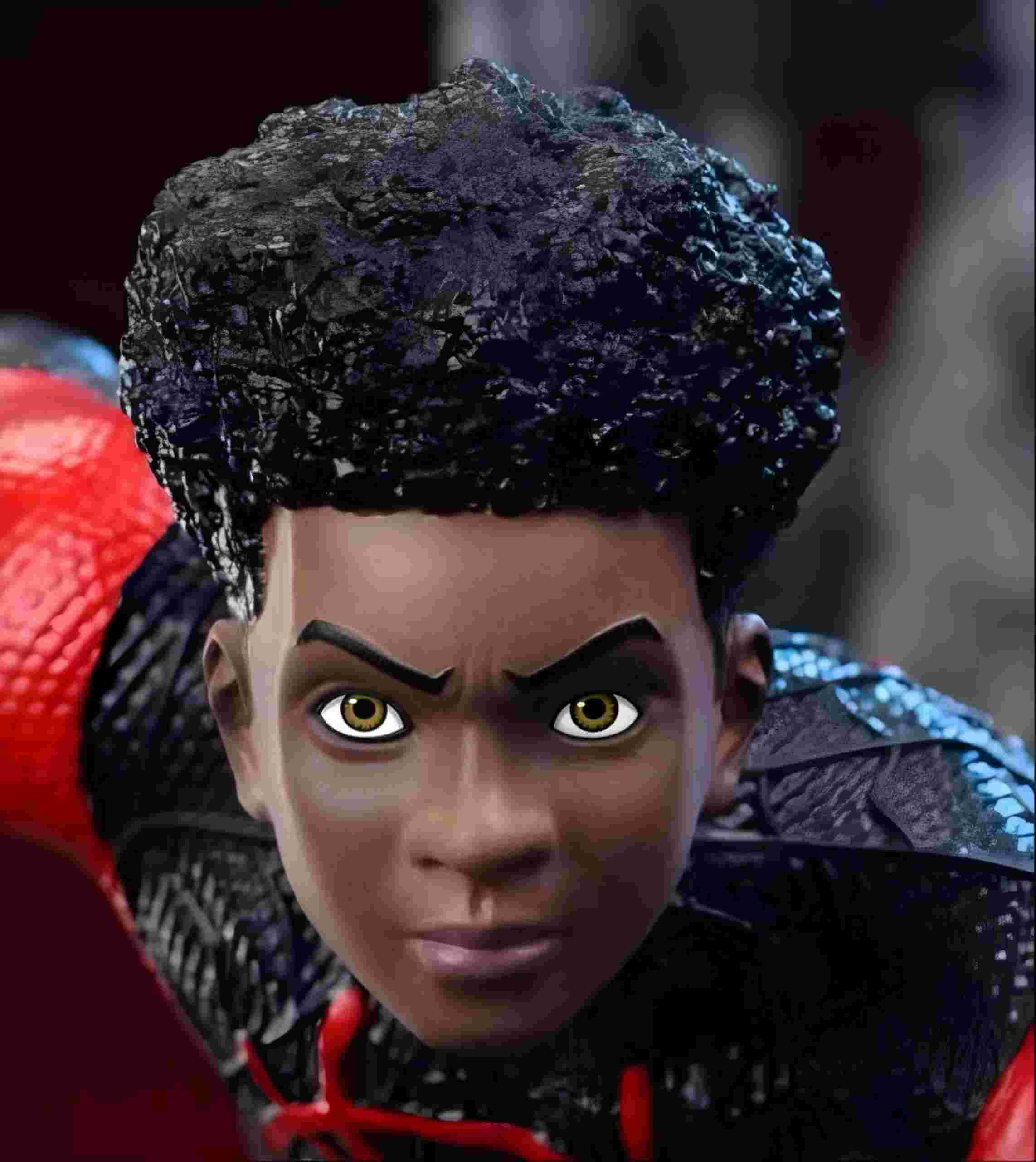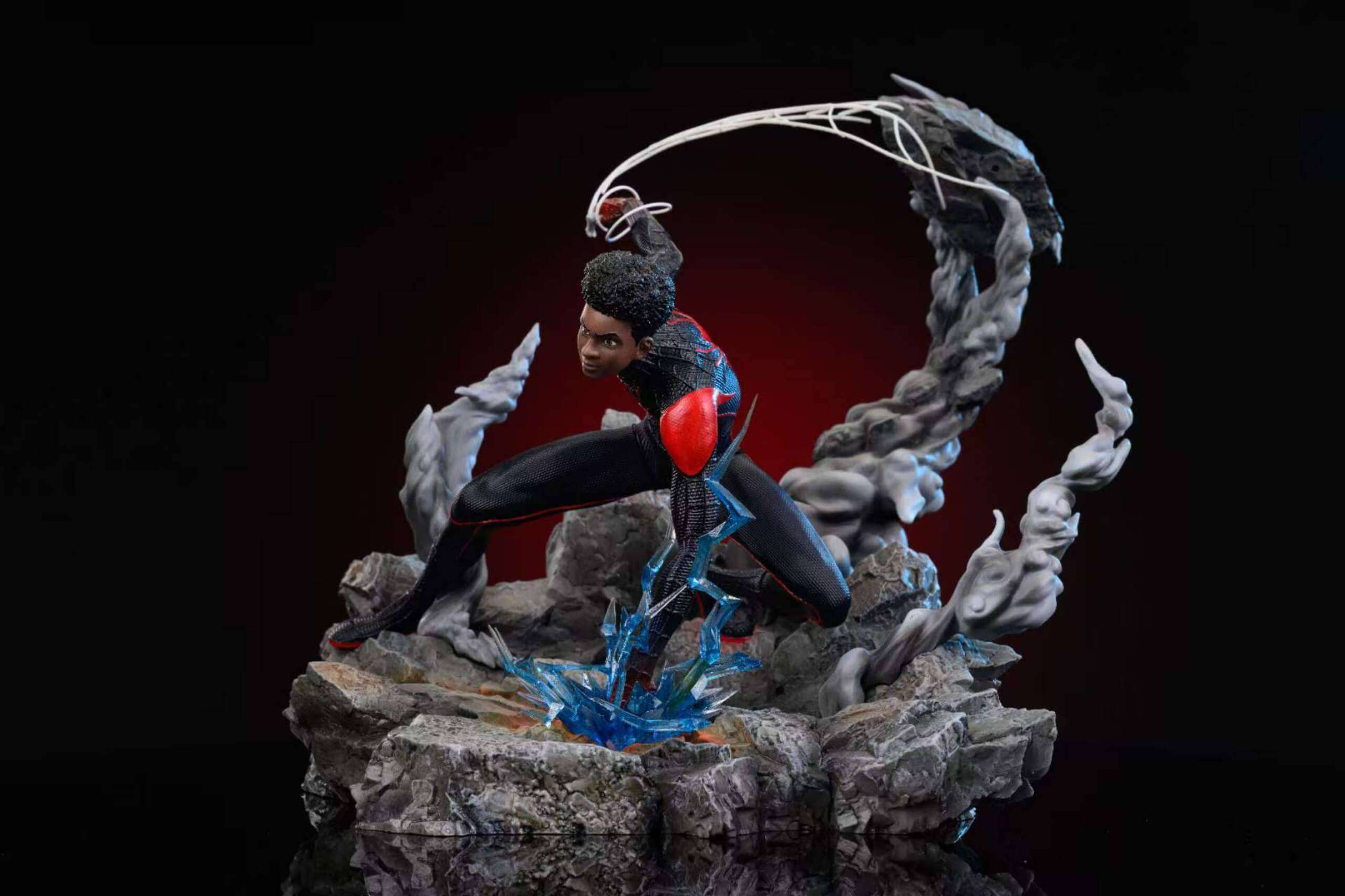 - Fully sculpted Miles Morales body in his black-and-red suit