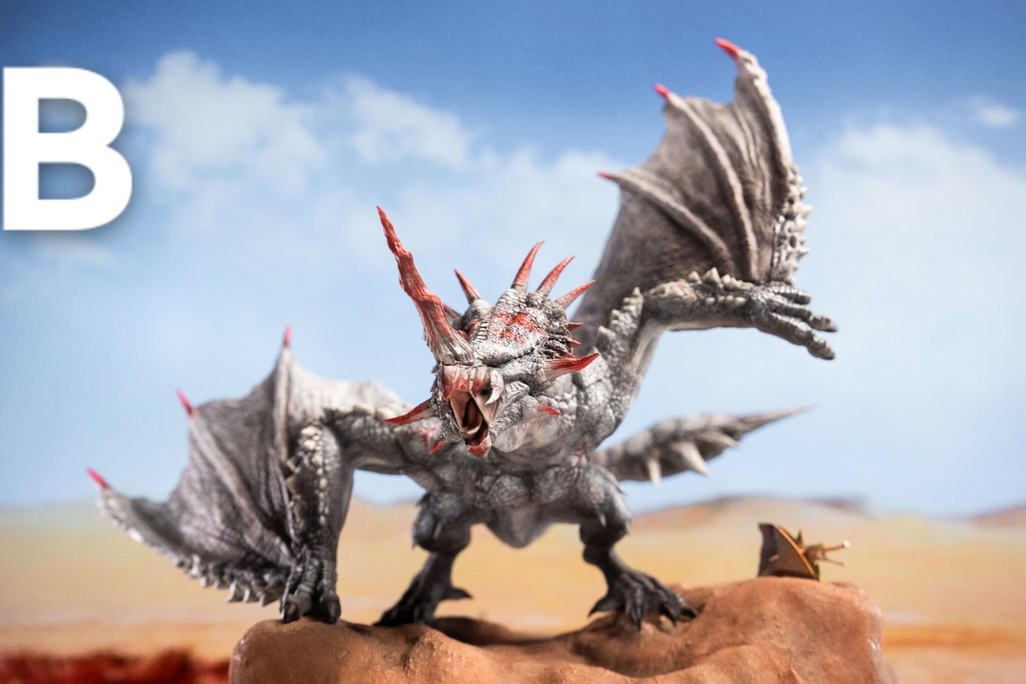 - Colorway: Classic sandy hide with charcoal claws (A-Version) / Albino hide with crimson horns and talons (B-Version)