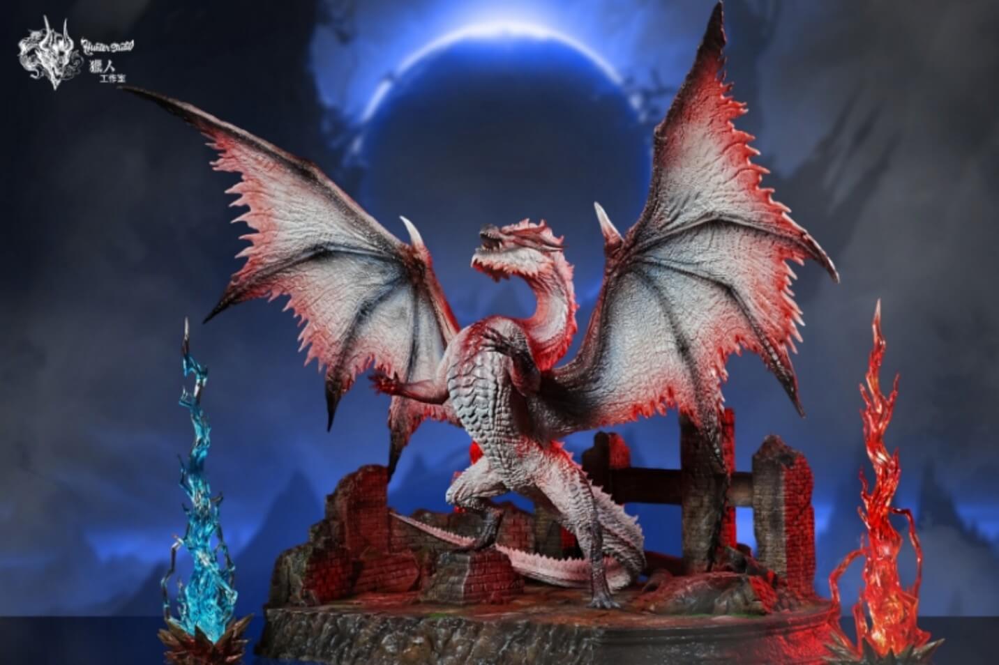 - White Fatalis statue with integrated LED illumination in the head, neck, and chest
