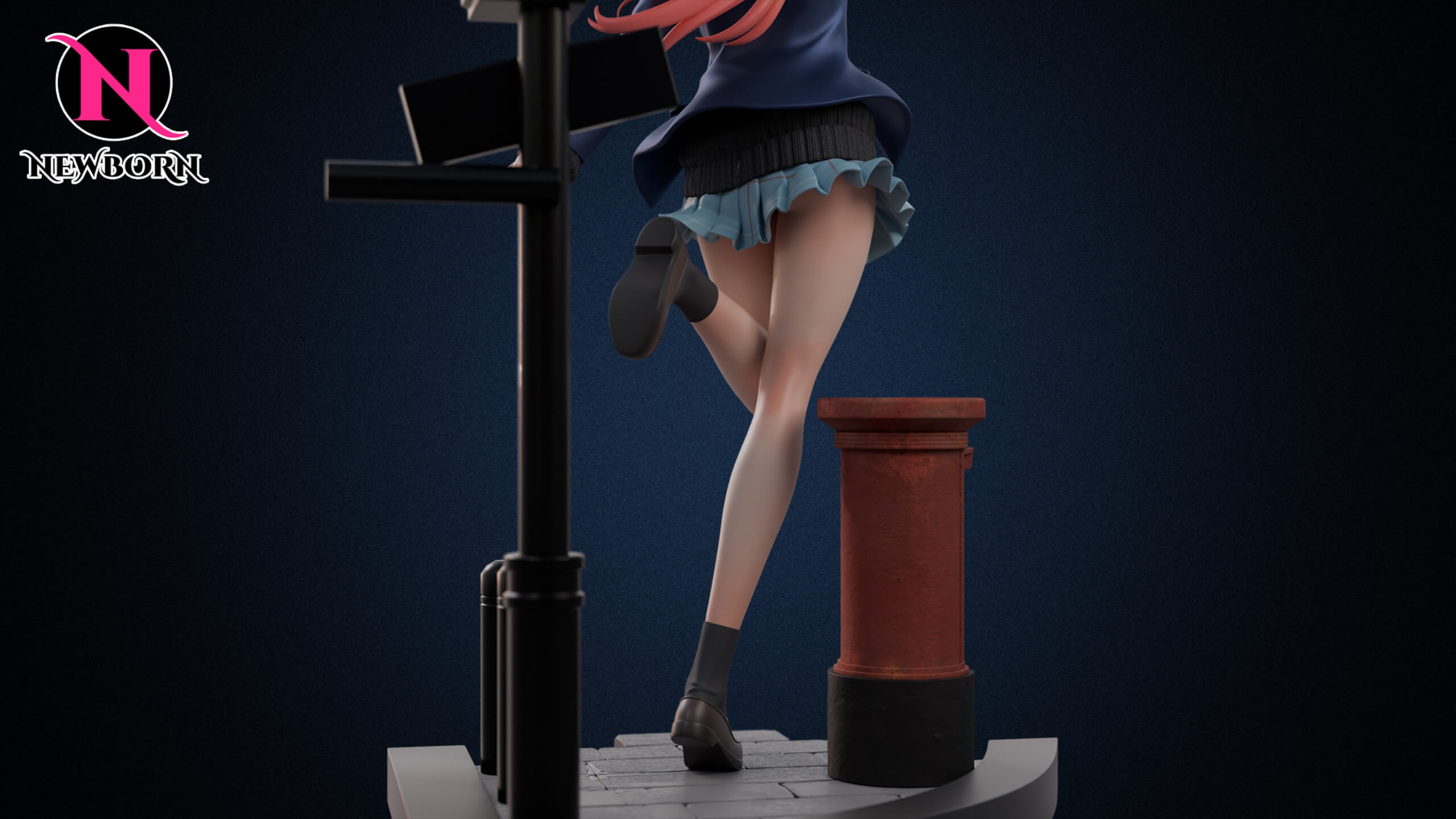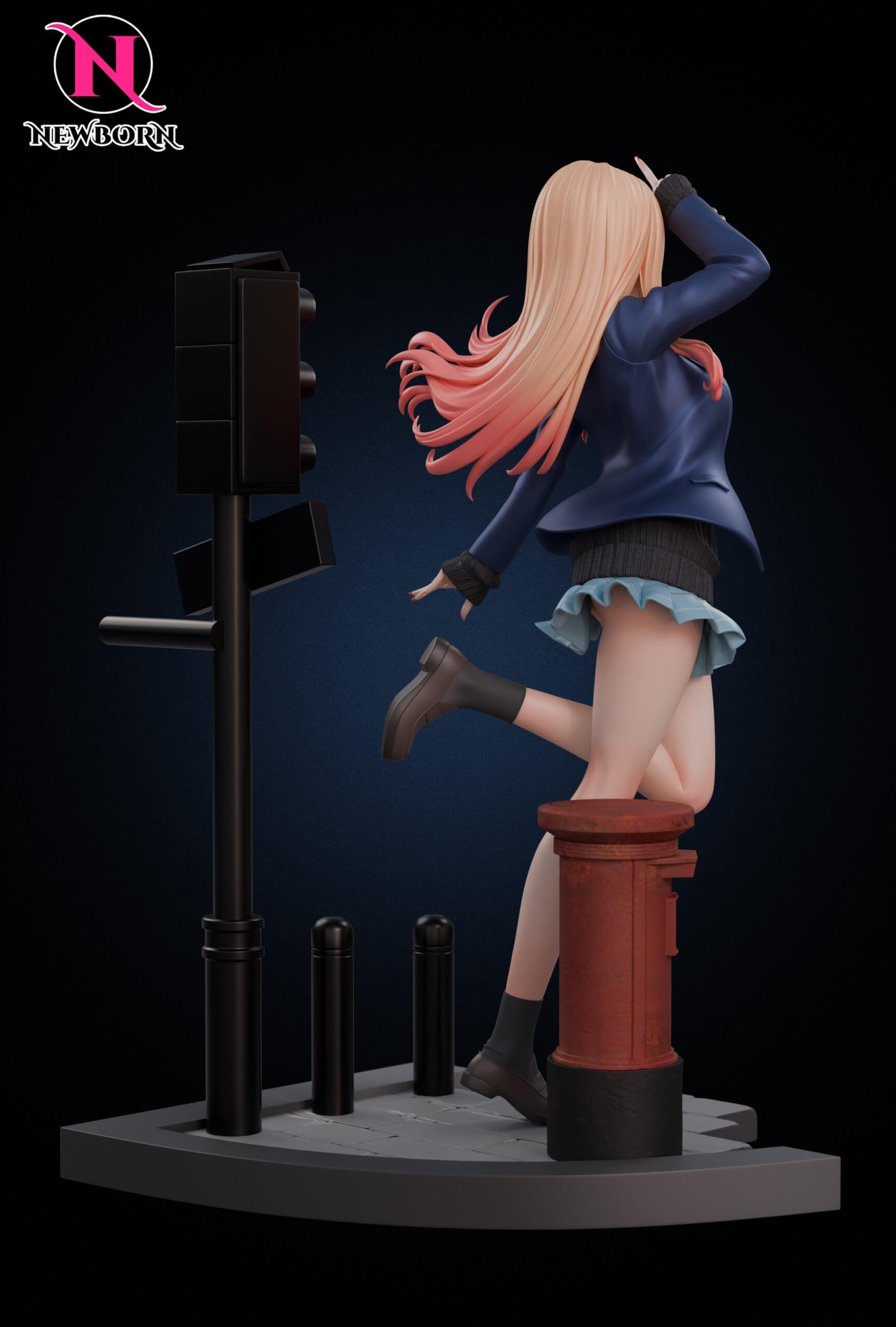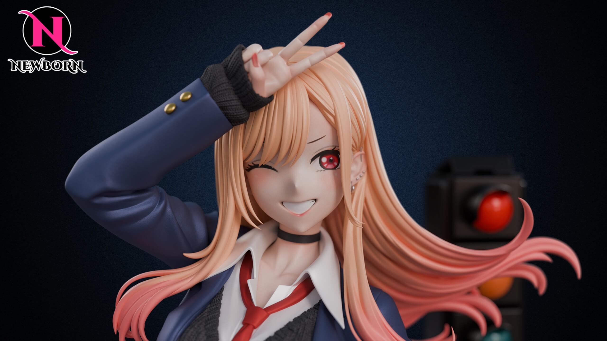 - Marin Kitagawa figure in school uniform, flashing a playful peace sign with flowing ombré hair