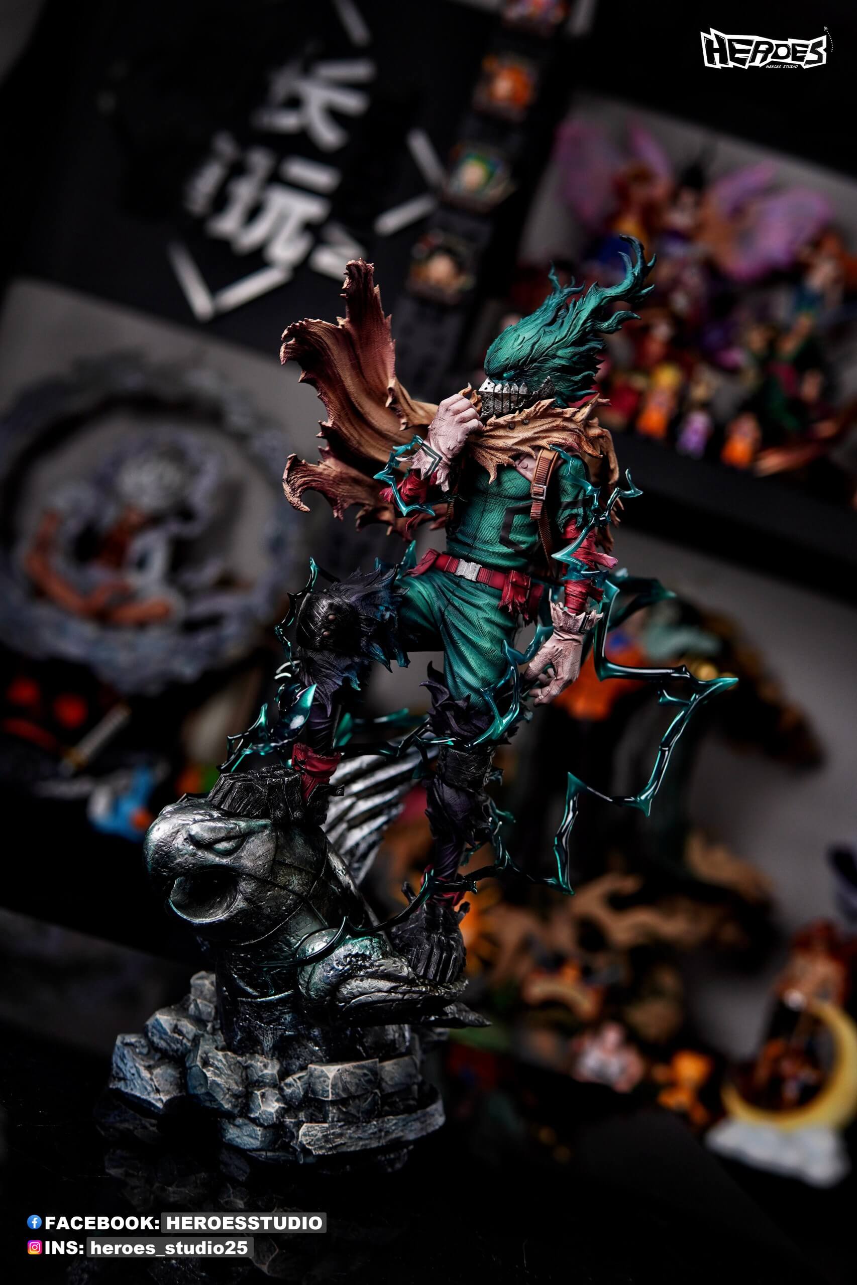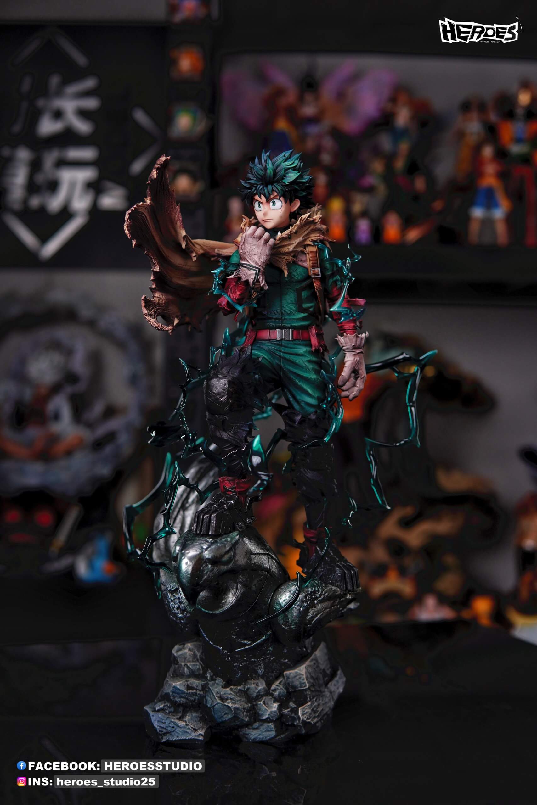 - Main statue of Deku in his “Dark Hero” vigilante outfit