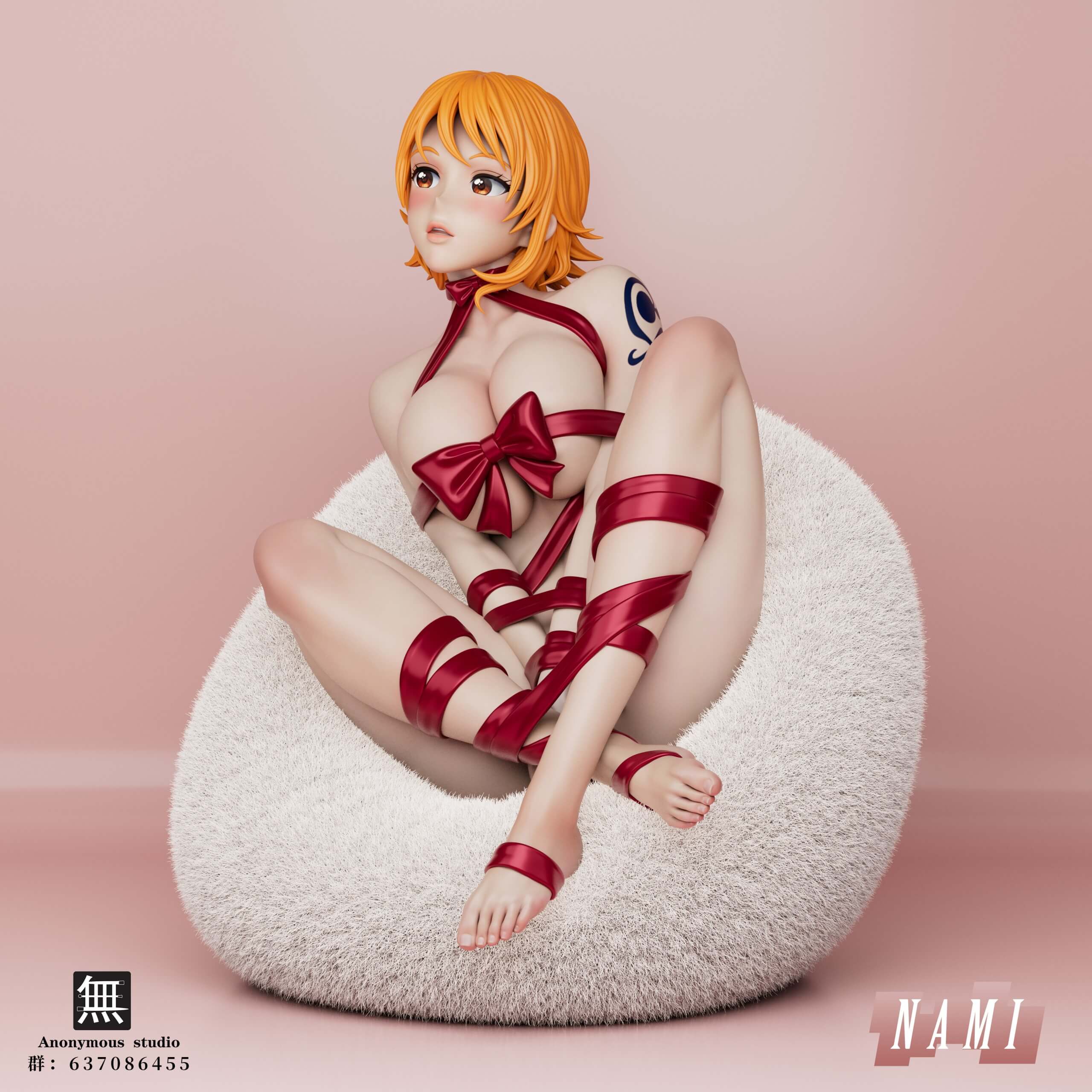 - Nami statue with an integrated, textured seat-style base