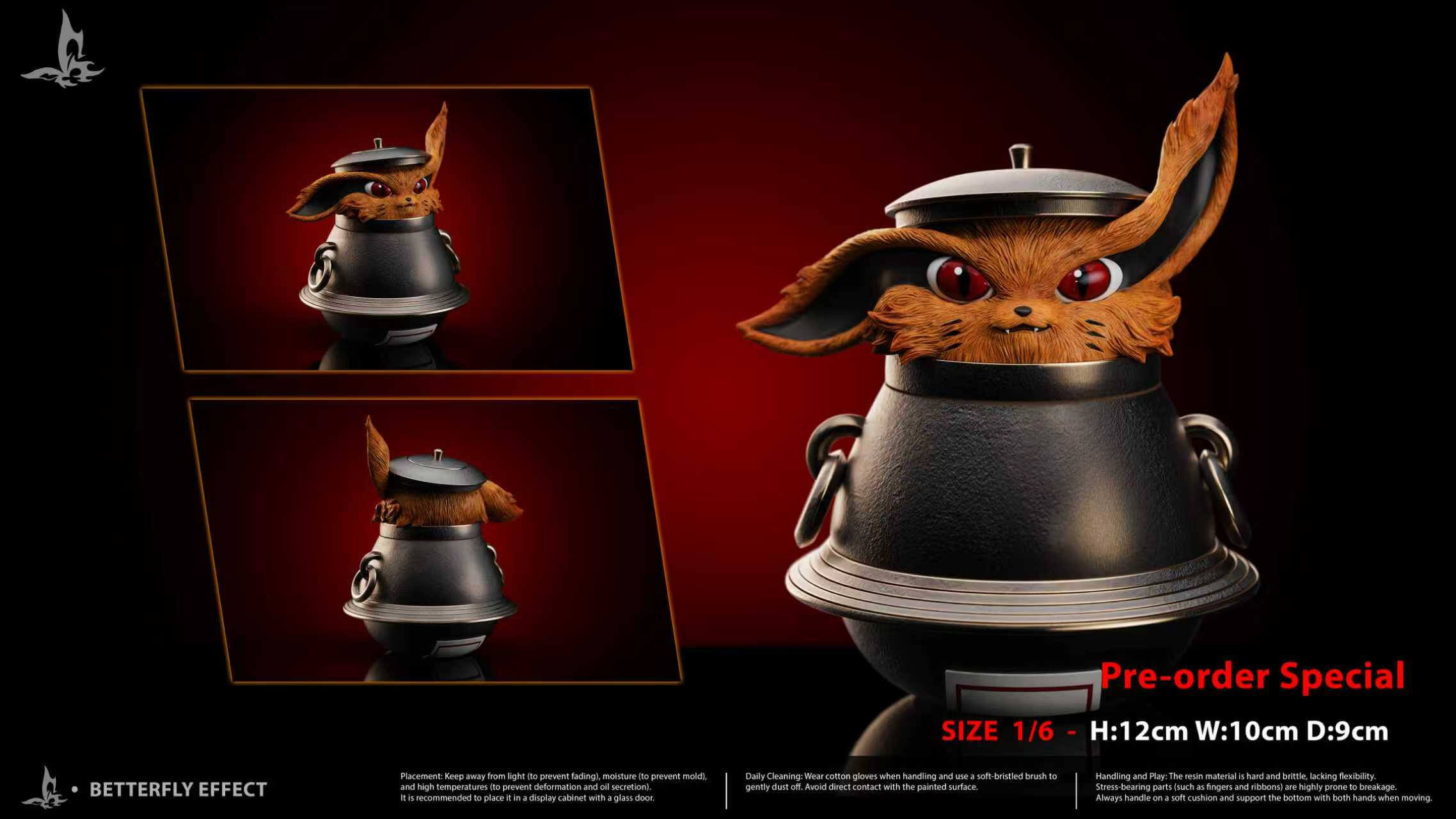 • × 1 mini Kurama tailed beast figure — an adorable chibi Kurama peeking out of a sealed pot, complete with expressive red eyes and textured fur