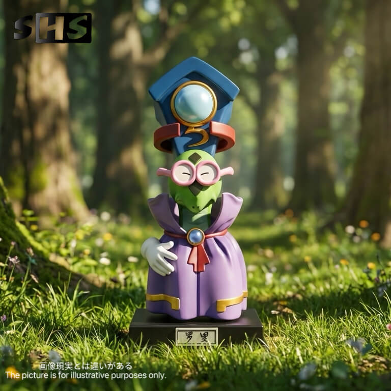 - Nyorori figure with sculpted levitating gloves, stacked blue hat, pink-framed glasses, and purple robe