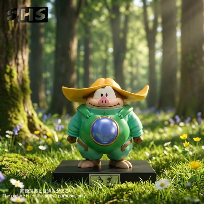 - Urii figure with yellow wide-brim hat, green suit, and chest crystal orb