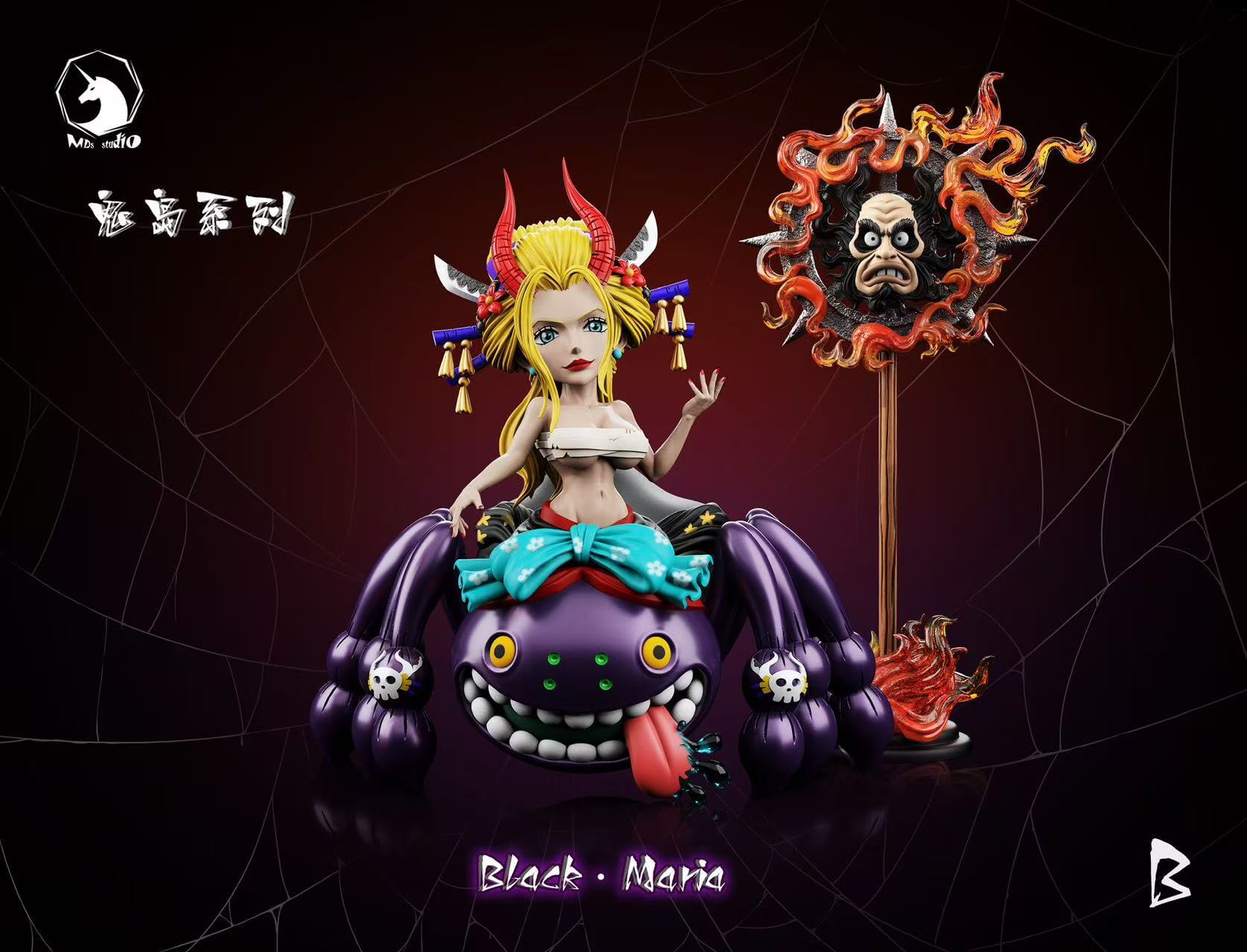 - B – Human-Beast Form: Depicts Black Maria in her spider hybrid form and includes her fiery companion, the Wanyudo.