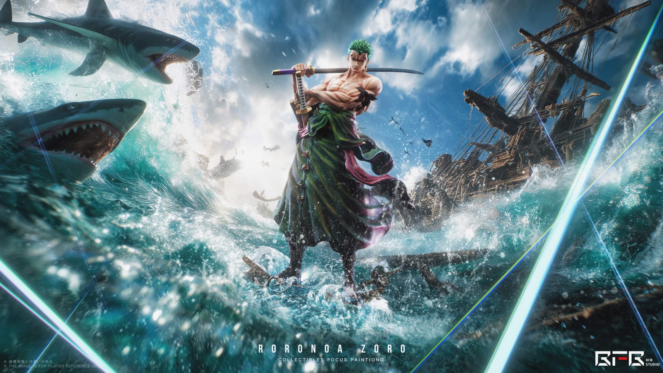 - Deluxe Version: Features the Zoro figure on a dynamic, light-sculpture diorama base with crashing waves and shipwreck debris.