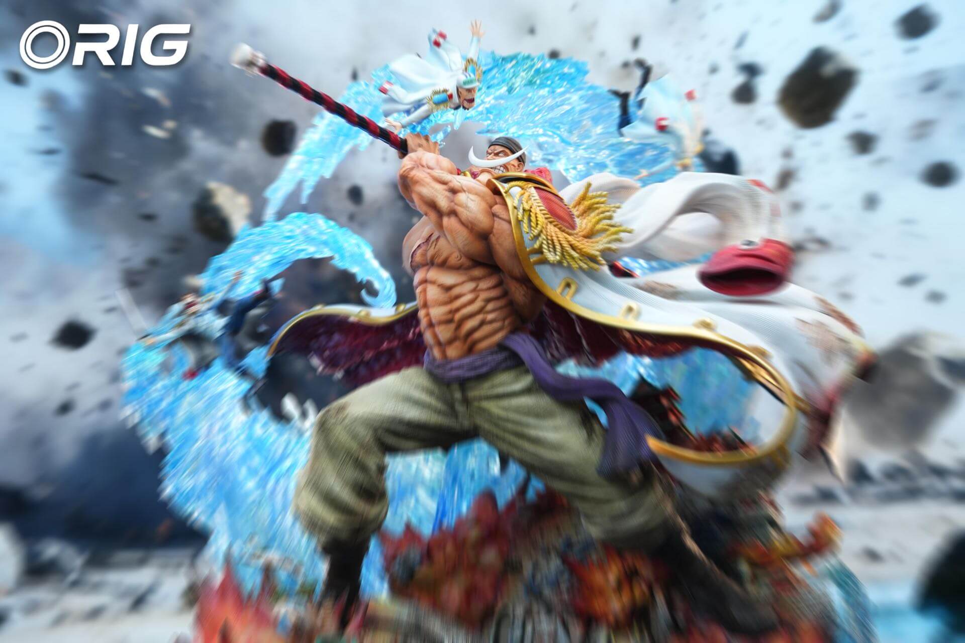 - Includes miniature battlefield elements embedded within the translucent water arcs for added narrative detail.