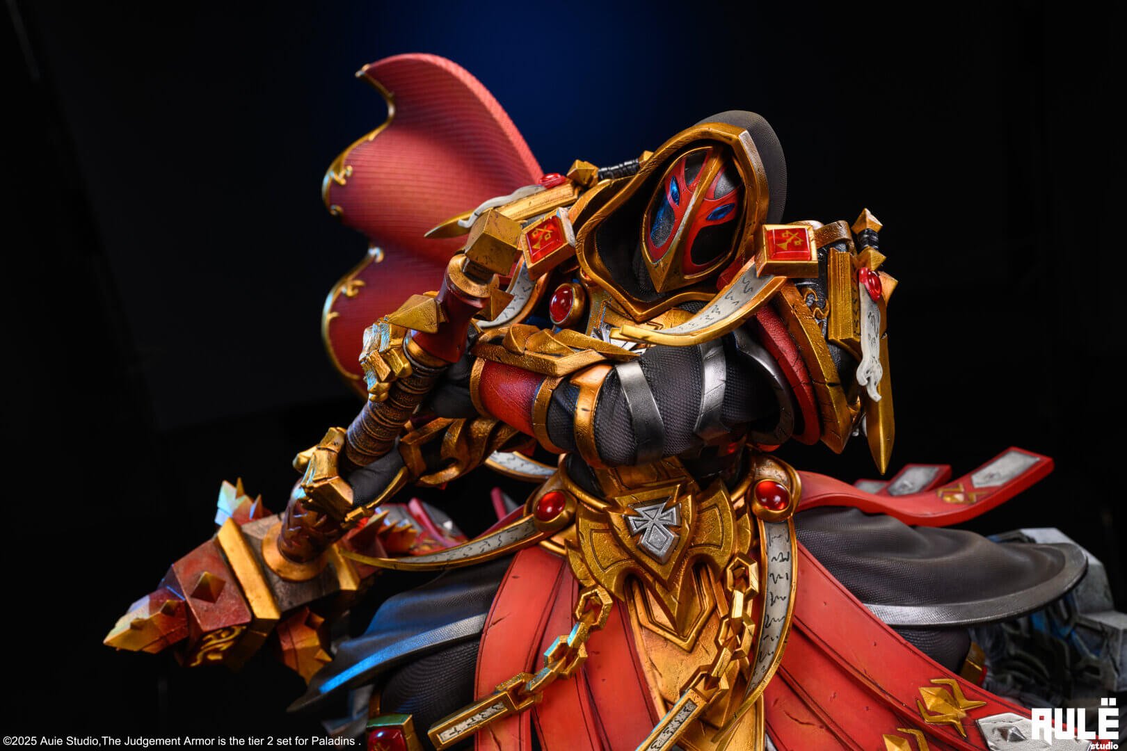 - Features a Paladin in the complete Tier-2 Judgement armor set, captured mid-swing with a two-handed hammer.