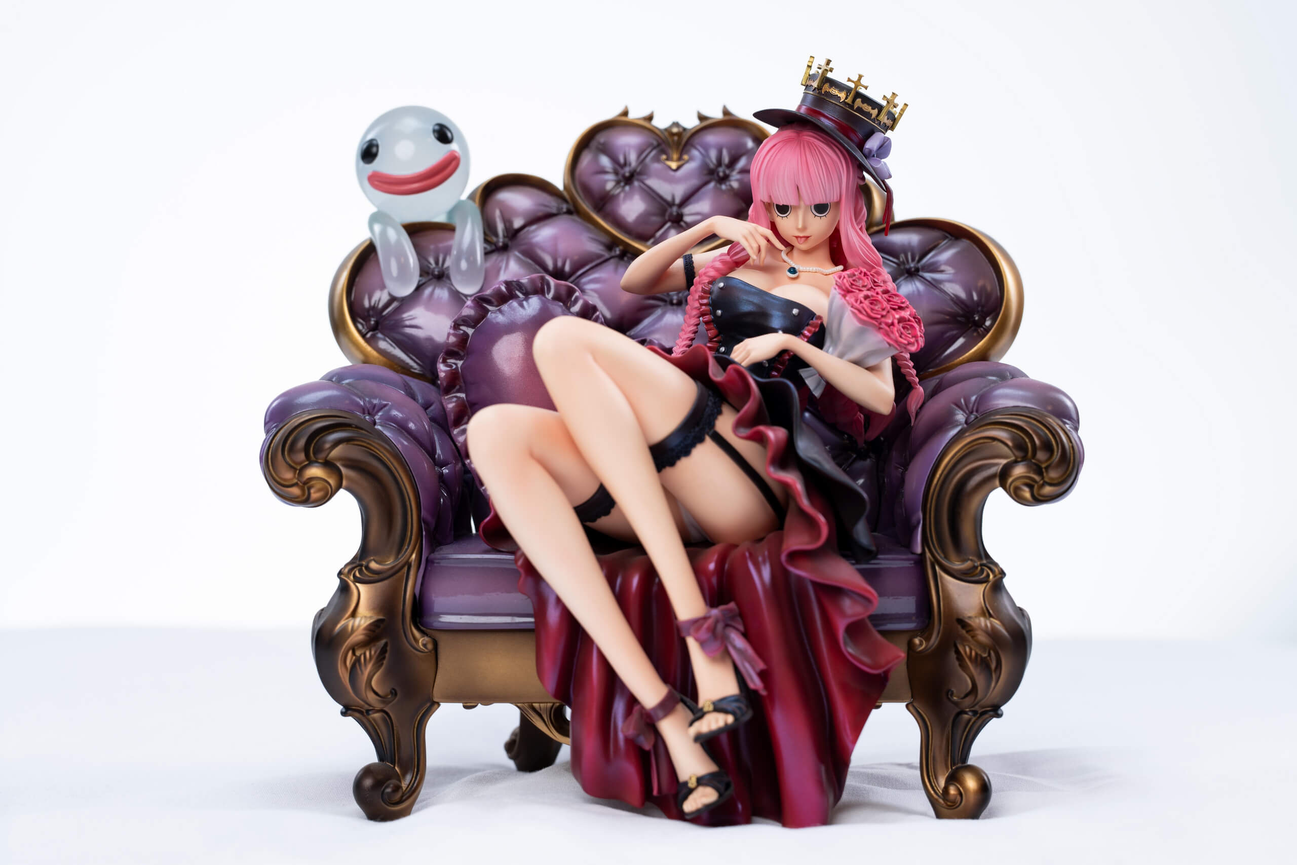This exquisite piece is a masterclass in atmospheric storytelling, capturing Perona’s unique “gloomy-cute” aesthetic on a compact, elegant display. The artistry shines in the contrast between the ornate, textured sofa and Perona’s smooth, porcelain-like skin. With an incredibly limited run of just 66 pieces and the narrative choice between romantic roses or a comical Zoro doll, this is a true grail for collectors who appreciate deep character-driven moments from the series.