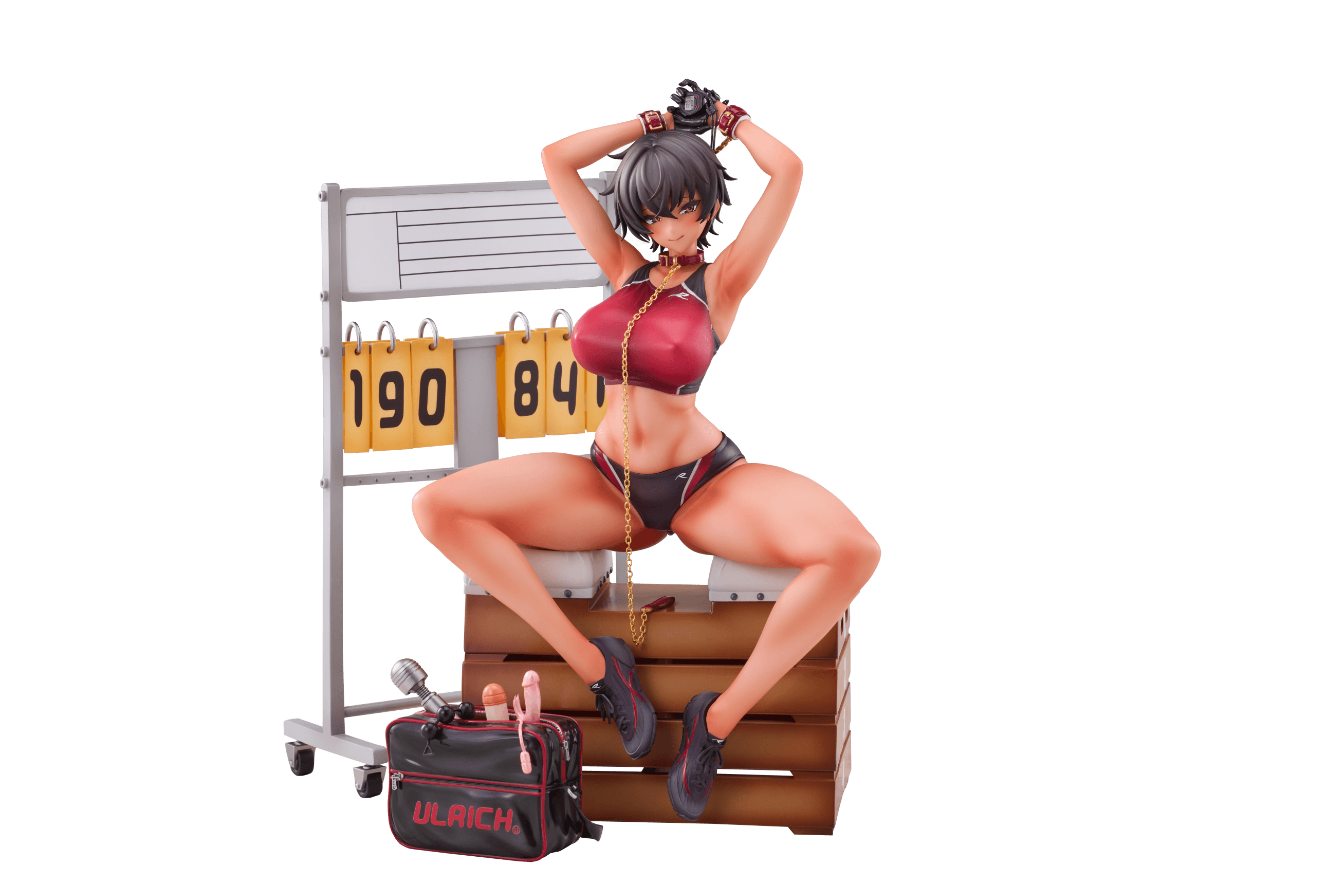 - Stopwatch — a small prop that reinforces the coaching / gym motif visible across the concept