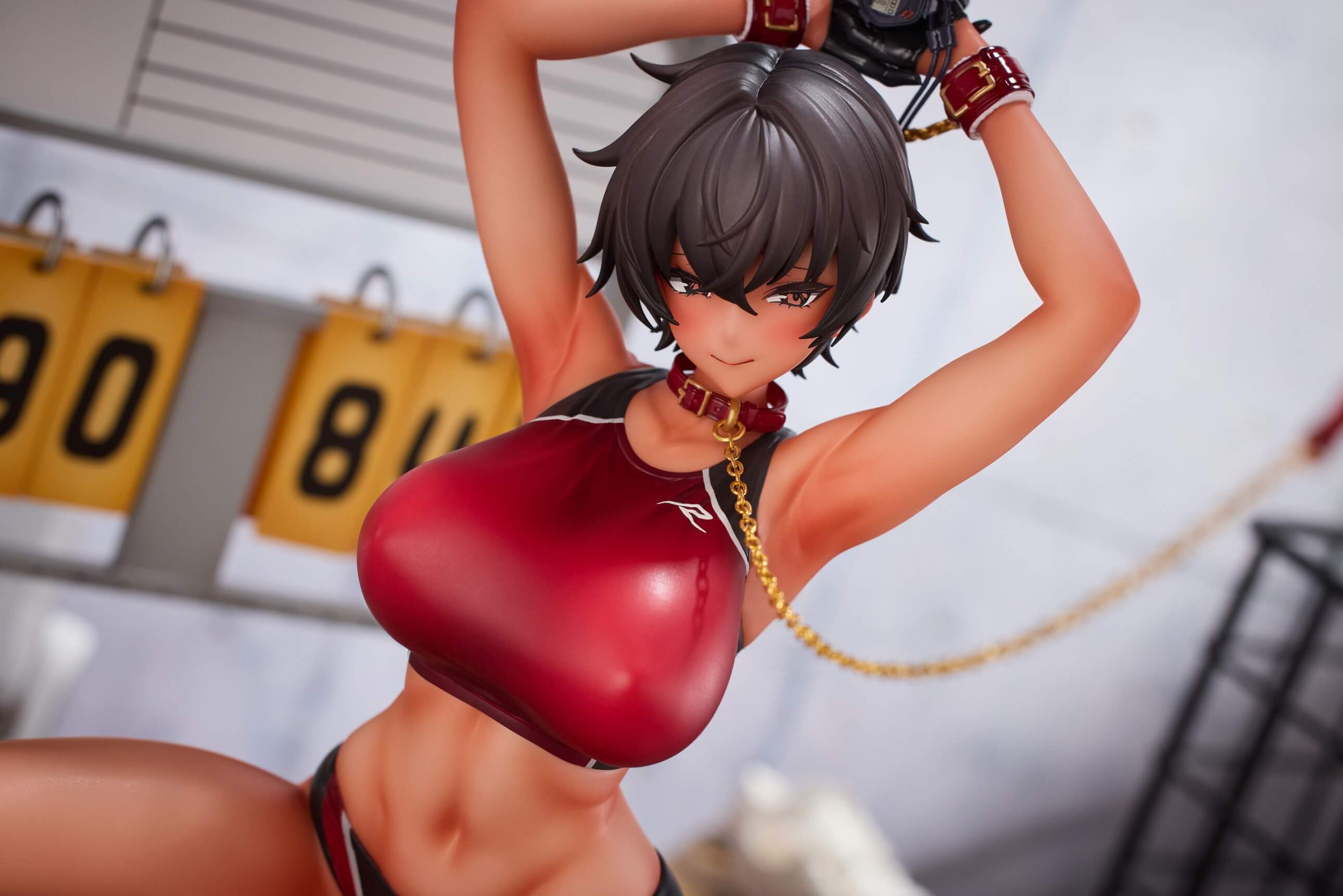 - Main figure with vaulting box-style base — staging the piece like a frozen showcase moment rather than a neutral seated pose